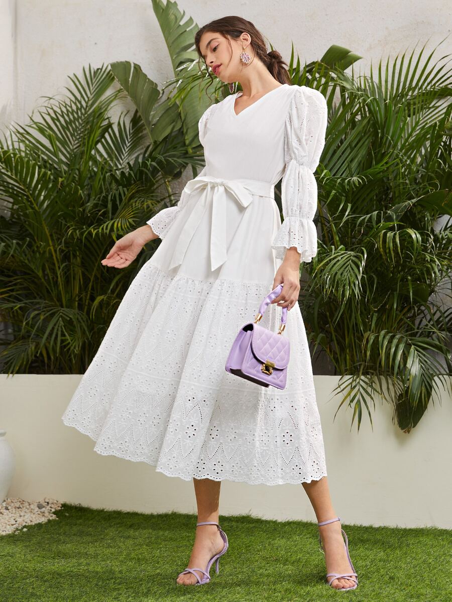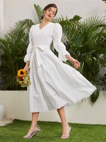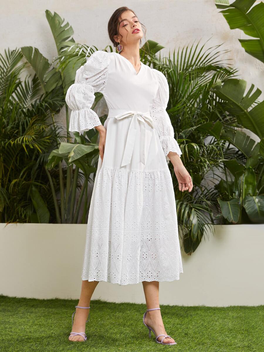 فستان بلوحة شيفي بحزام ذاتي وبأكمام مكشكش