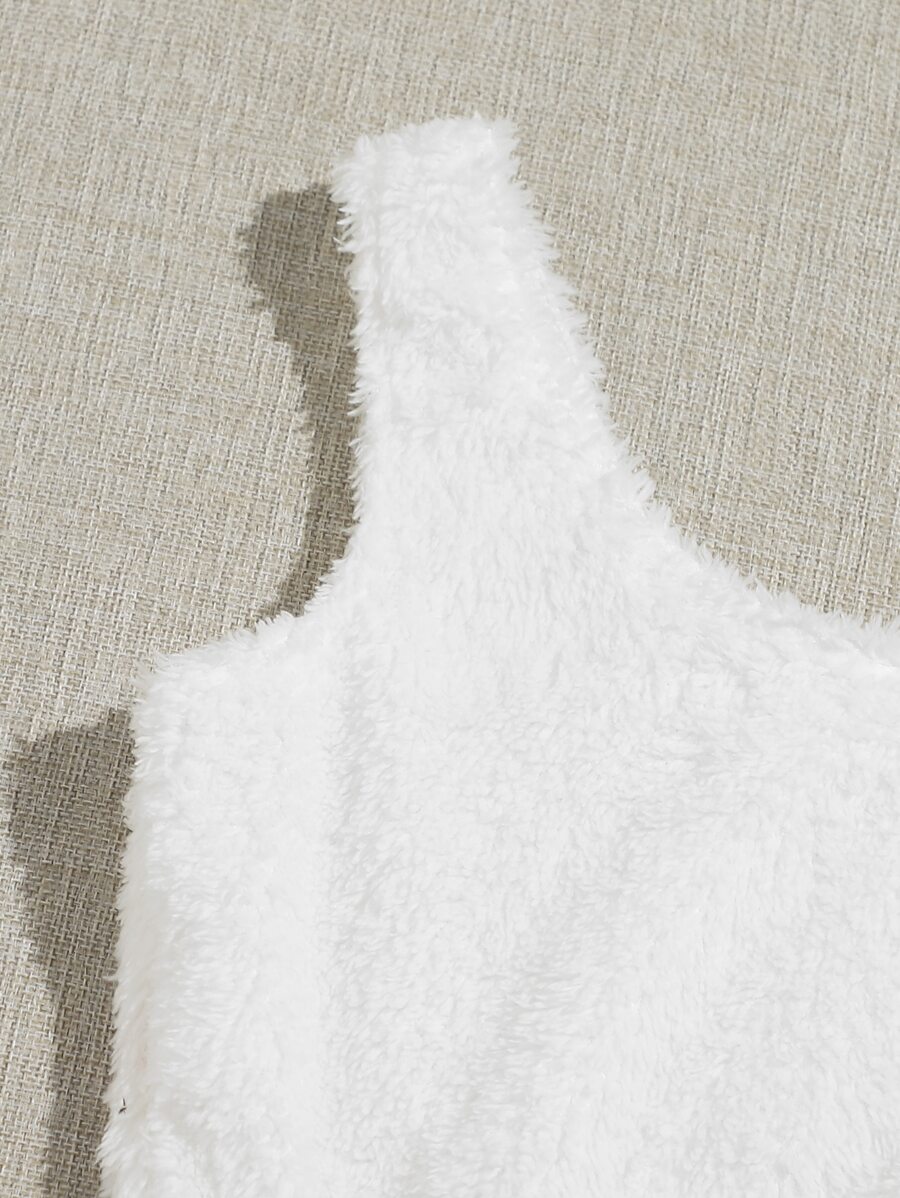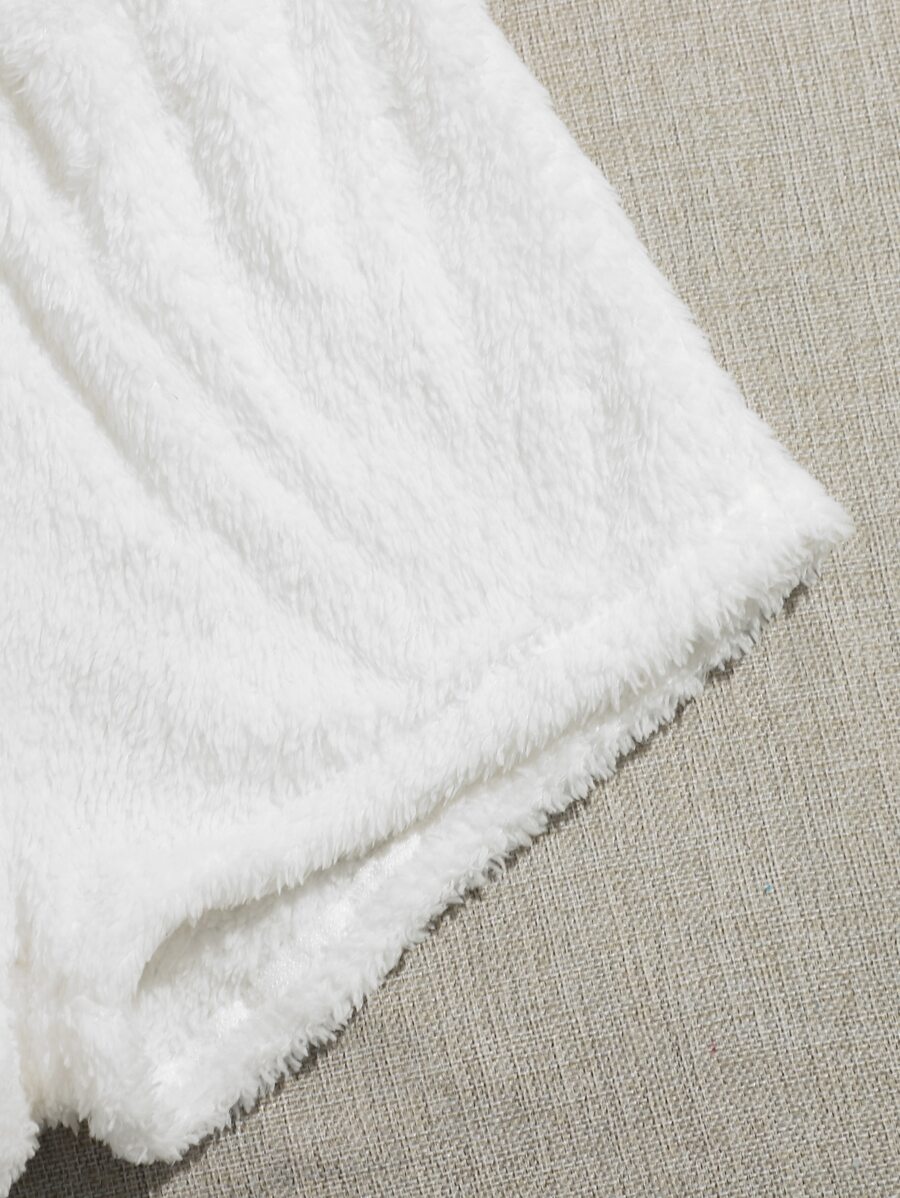 طقم بيجامة من الفرو الناعم يتكون من ملابس علوية وشورت أبيض