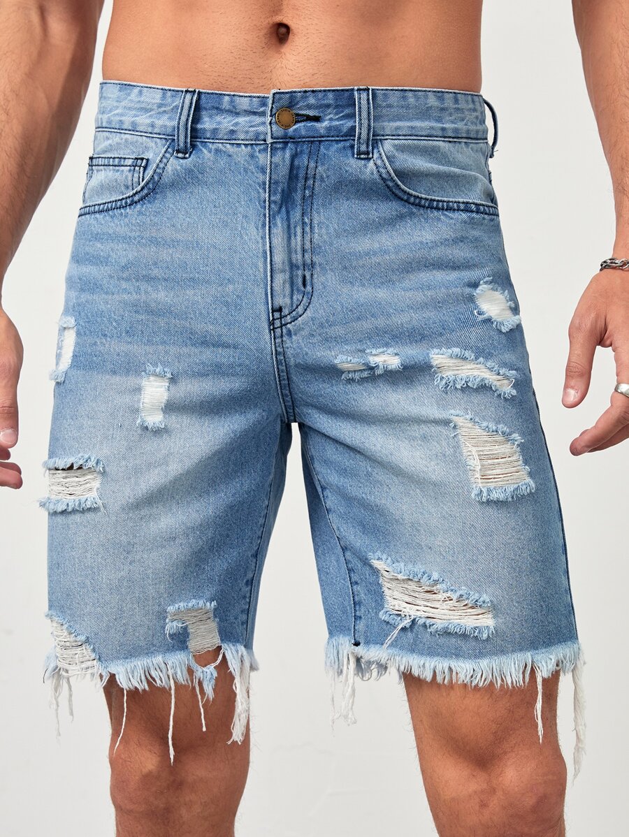 GENTILAND شورت جينز بحافة خام ممزق قطن للرجال