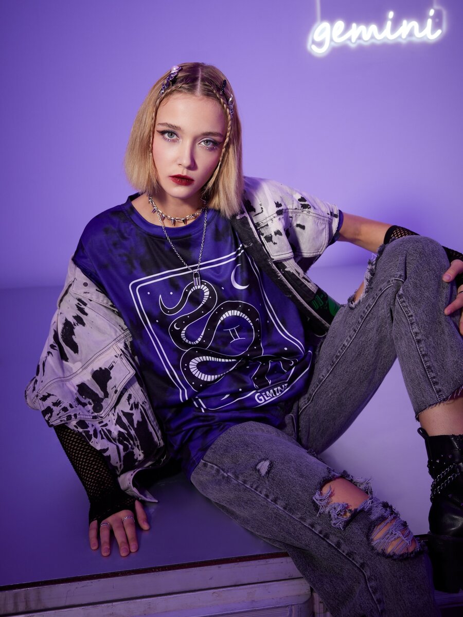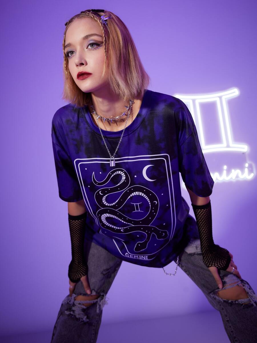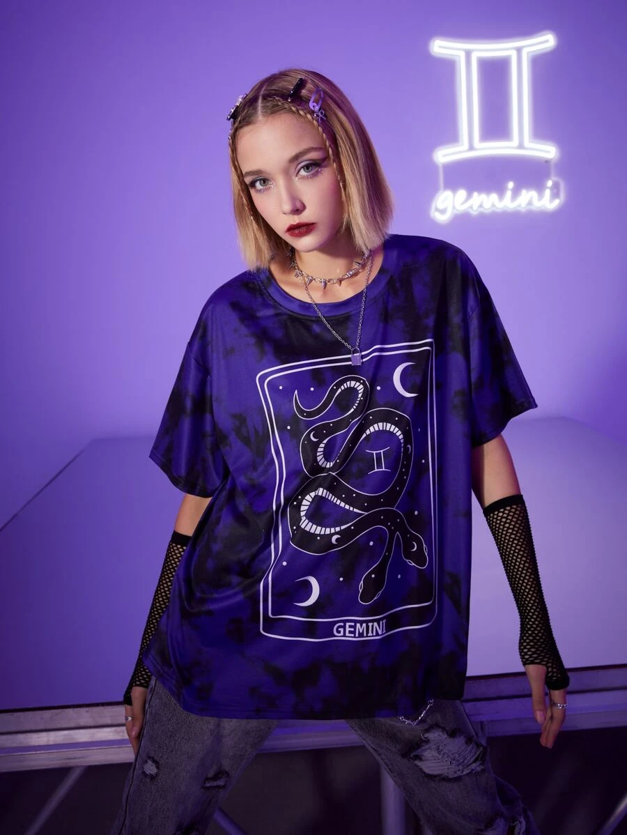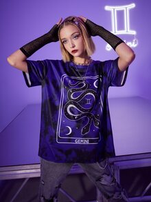 تي شيرت ثعبان بطباعة أحرف صبغ متعادل