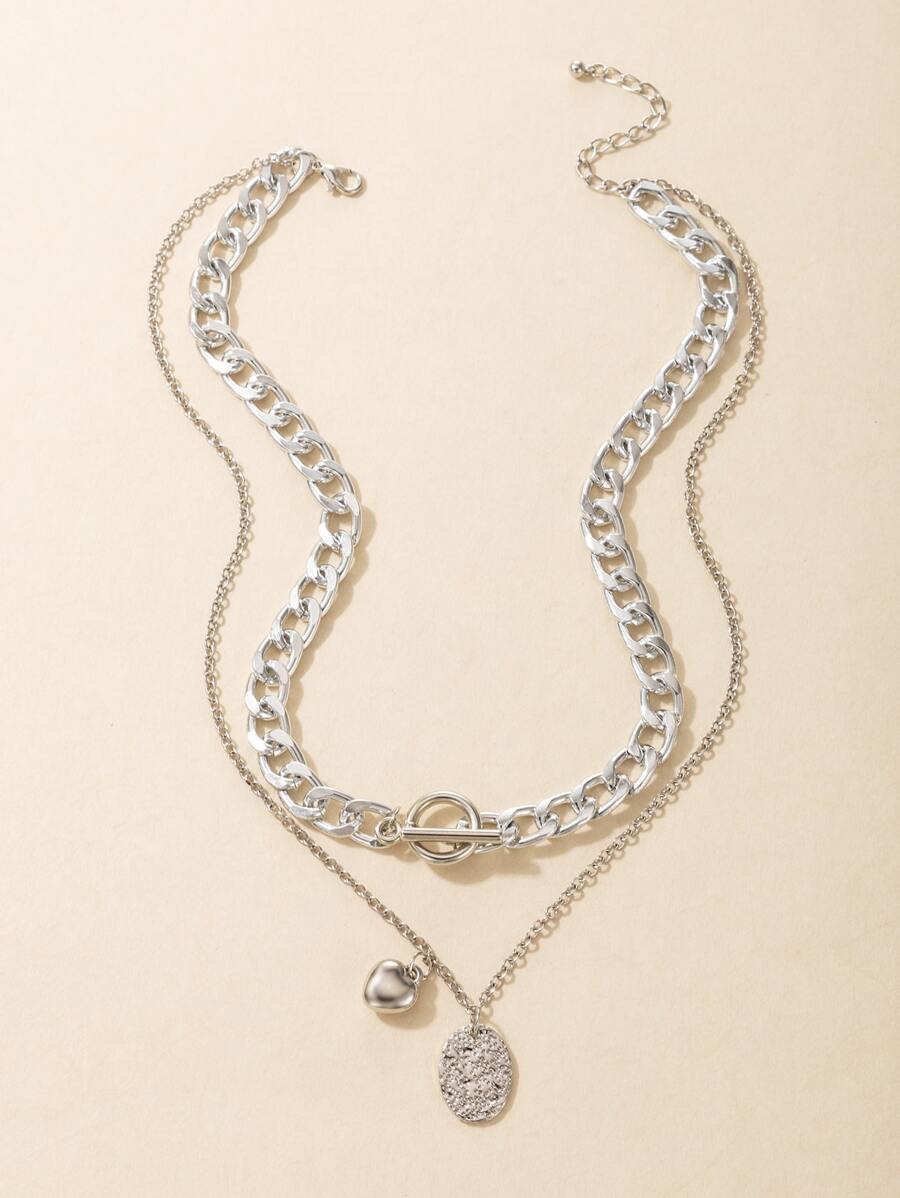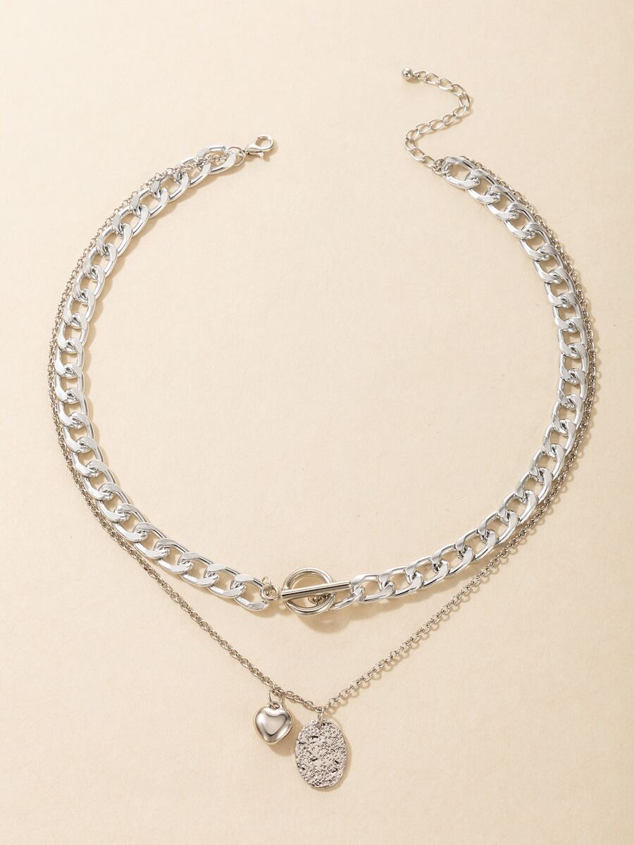 قلادة طبقات بتعليقة قلب مع جغرافي