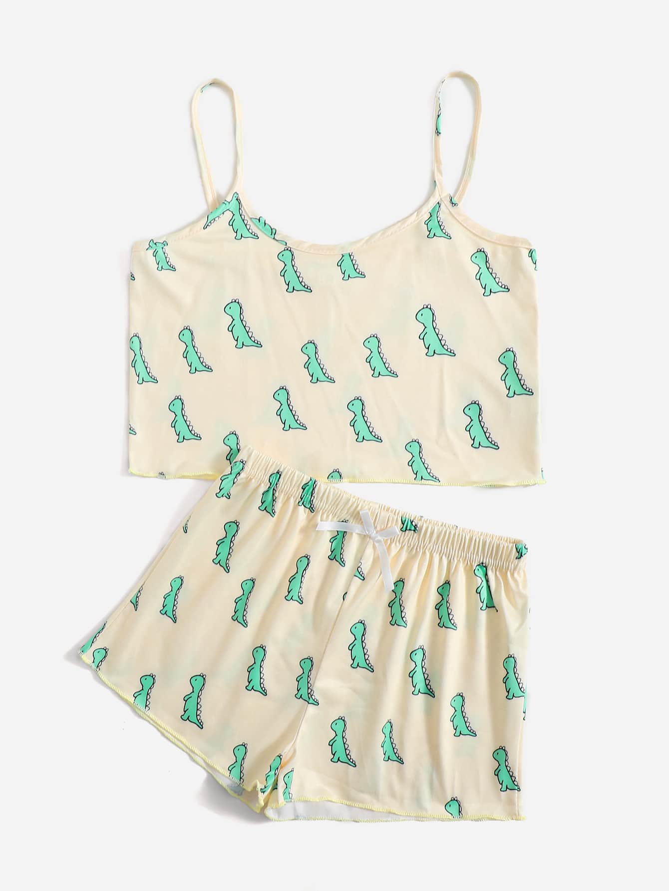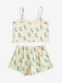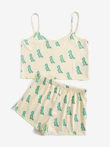 طقم بيجامة بطباعة ديناصور شامل للبنات