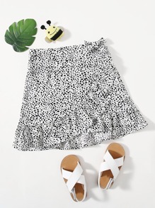 تنورة مطوي بحافة مكشكش بطباعة شامل للبنات