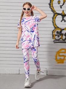 طقم طماق مع لباس علوي بطباعة شامل للبنات