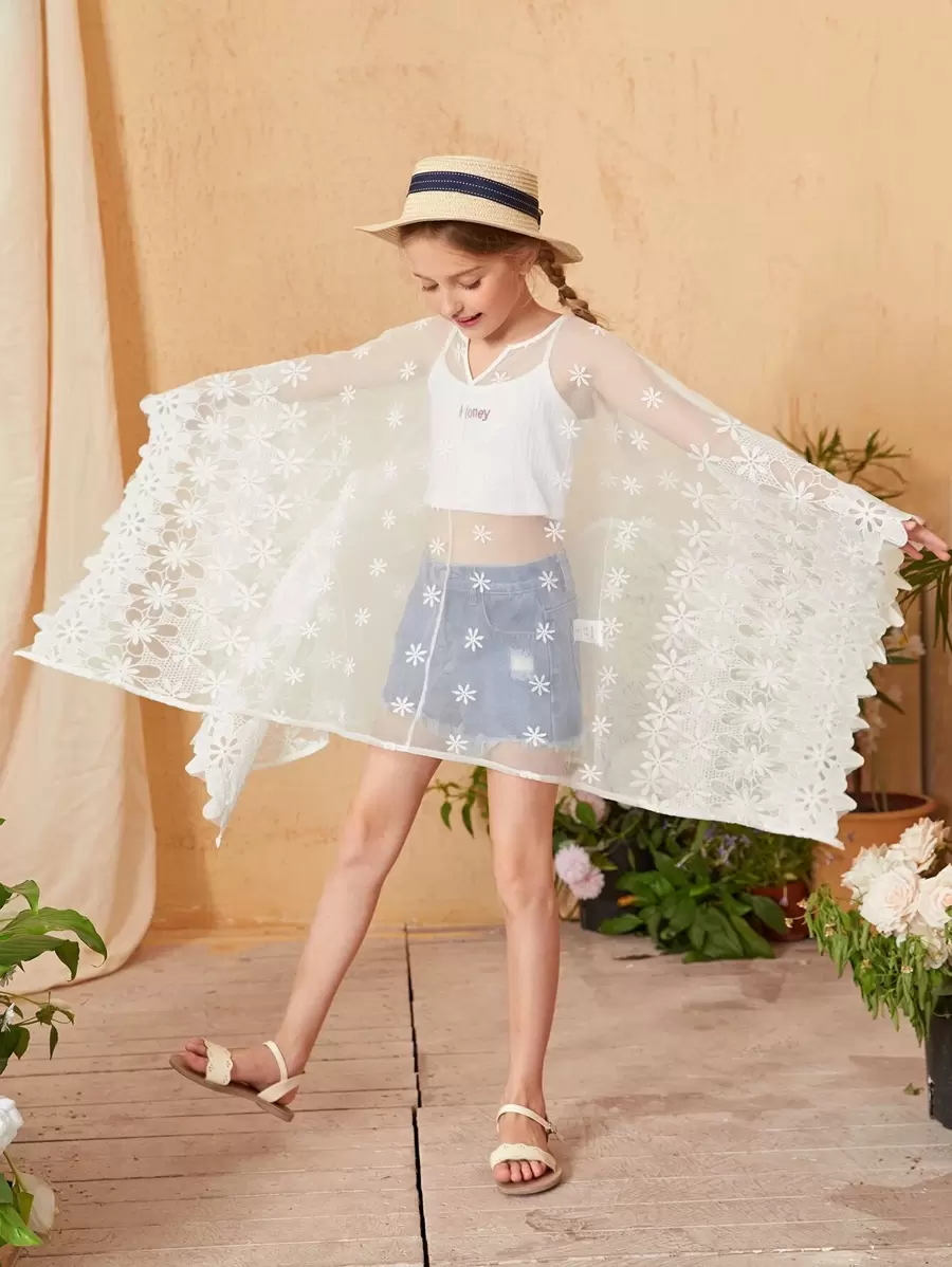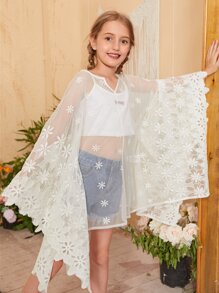 لباس خارجي شفاف شبكي مطرز باكمام جناح خفاش للبنات