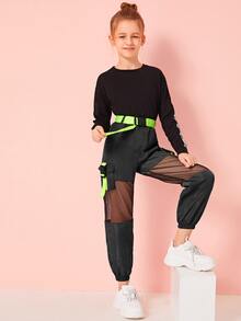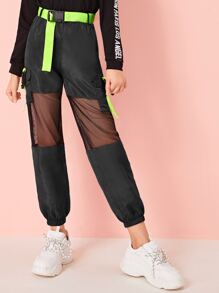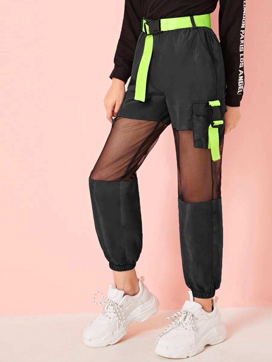 سروال عريض بادخال شبكي وبجيب مصحح رفرف وبحزام مع مشبك للبنات