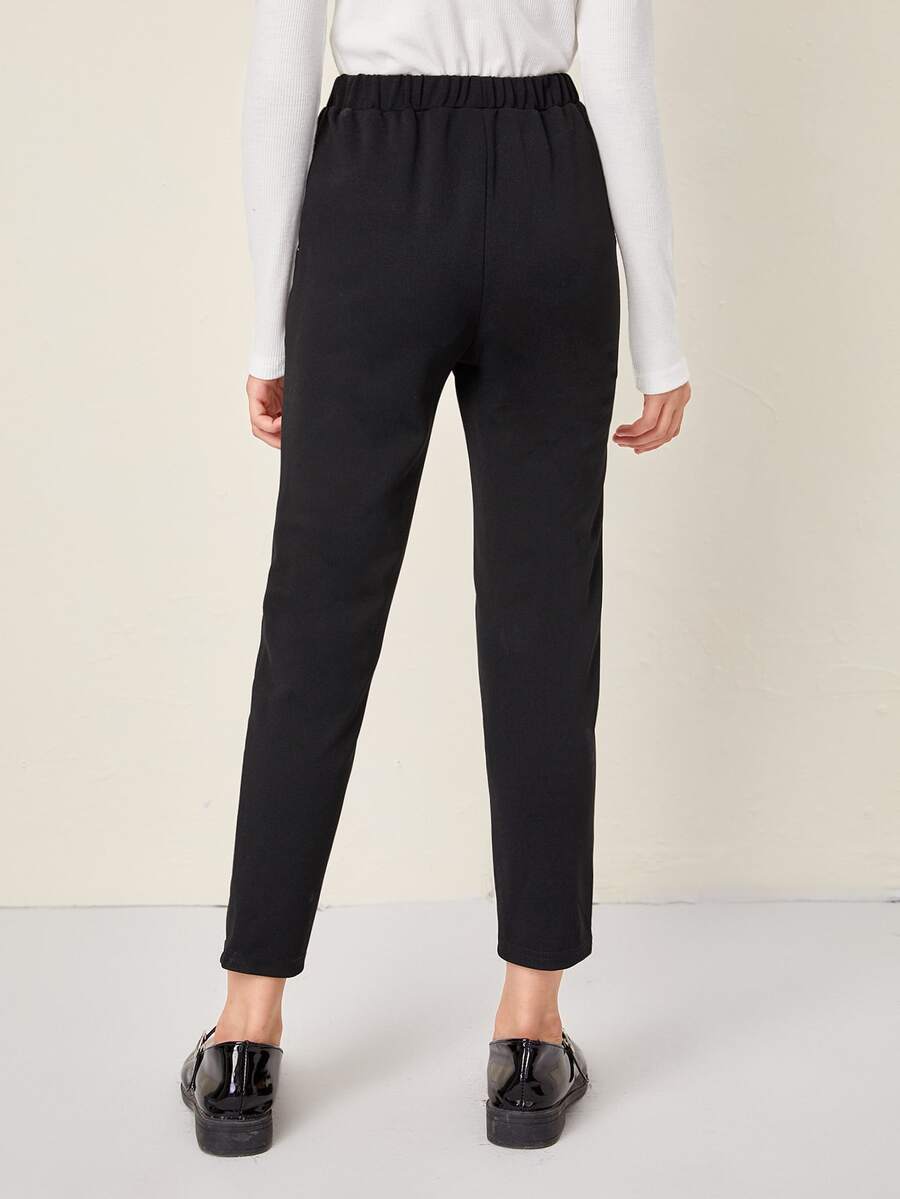 سروال بجيب مائل مقلم بهدب وبتفاصيل زر للبنات