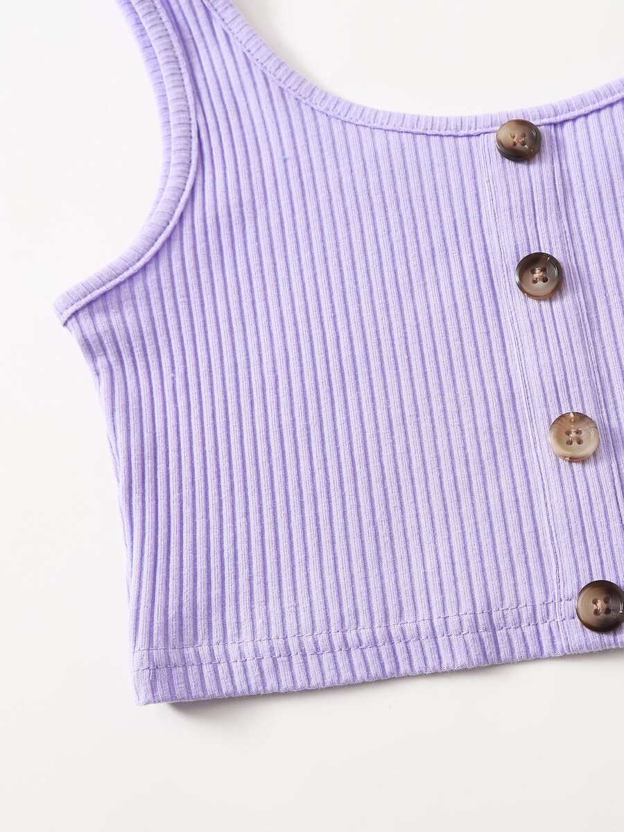 لباس علوي تانك محبوك مضلع وبأزرار امامي للبنات