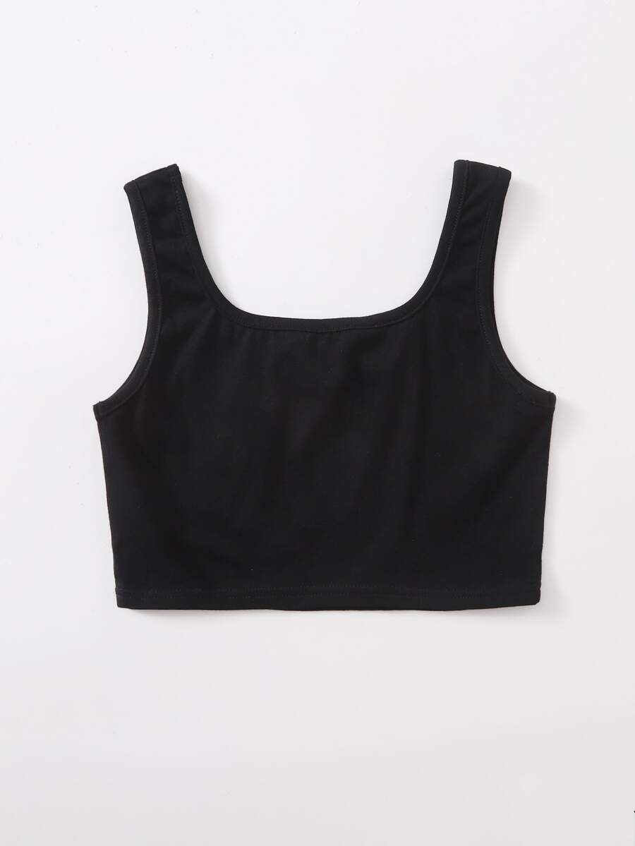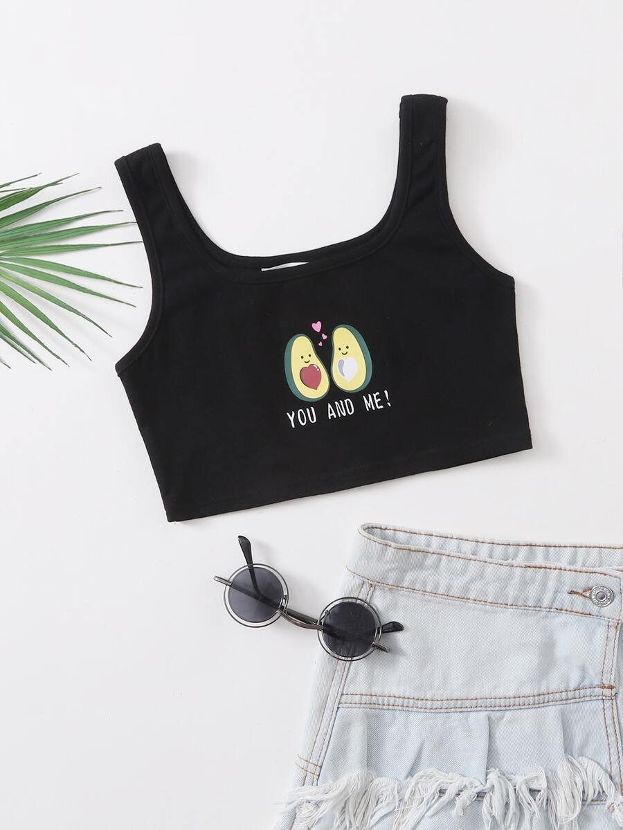 لباس علوي تانك قصير بجرافيك عبارة ورسوم كارتون للبنات
