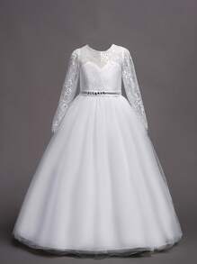 فتاة مراهقة يتباين فستان تيوتو الدانتيل الراينستون