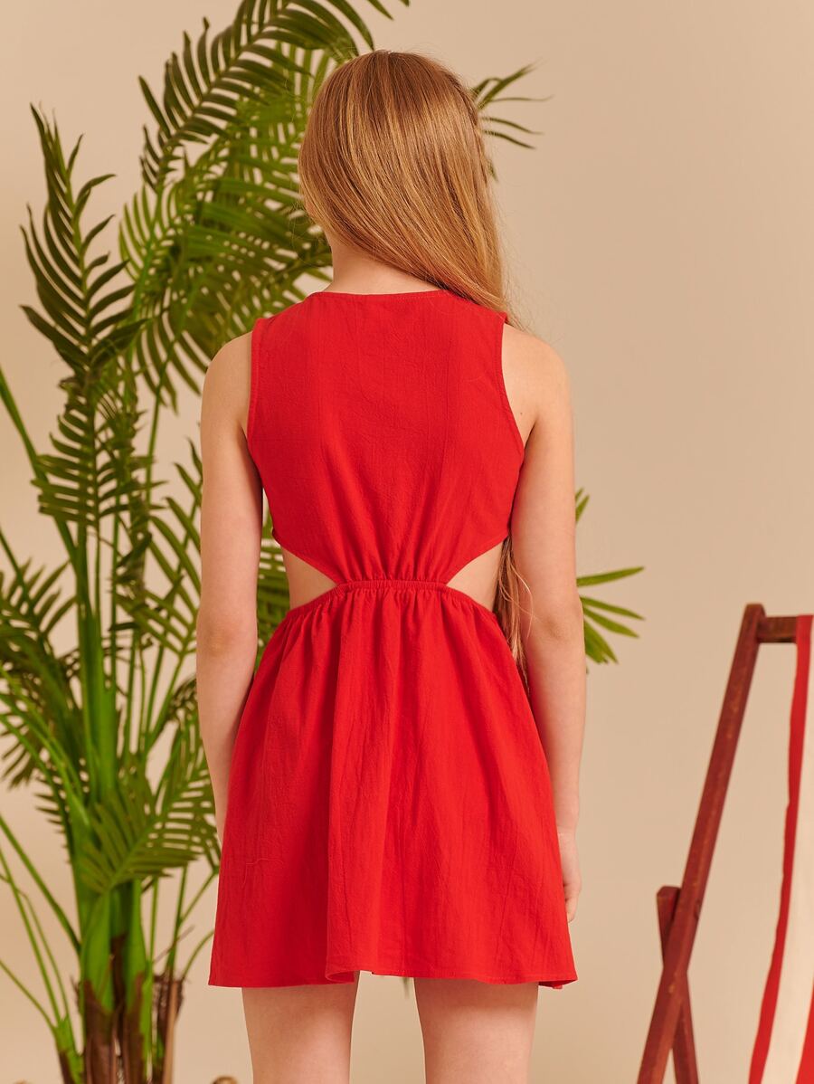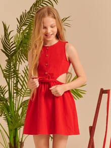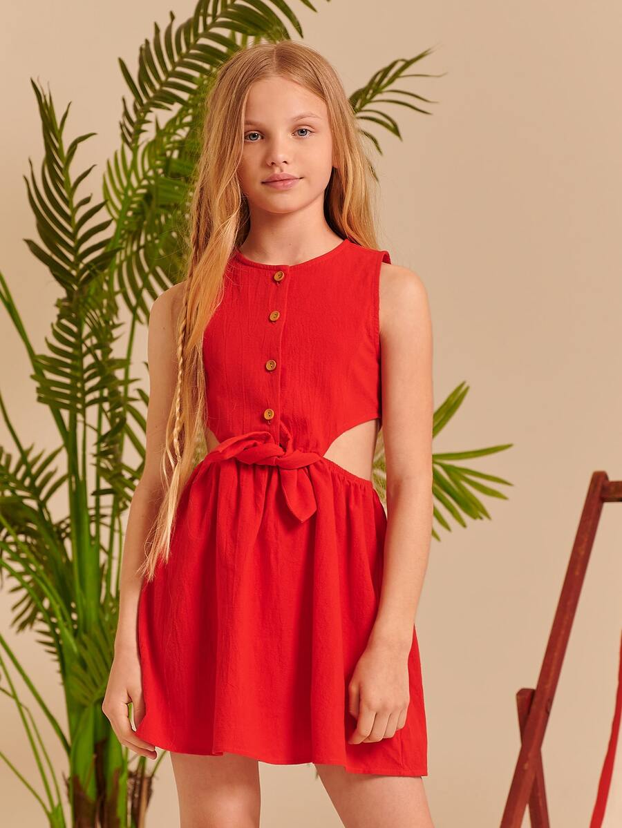 فستان بربطة امامي وبخصر مقصوص للبنات