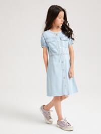 بنات فساتين دينيم أزرار أمامية