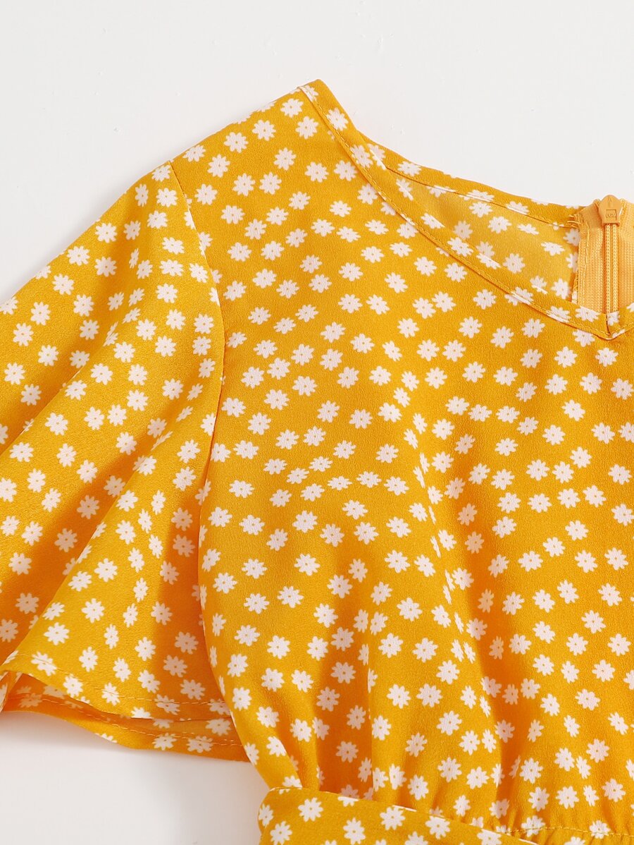 رومبير بحزام وباكمام منتفضة بزهر اقحوان للبنات