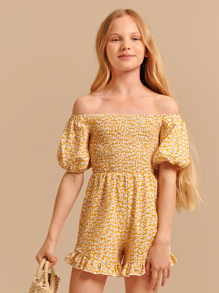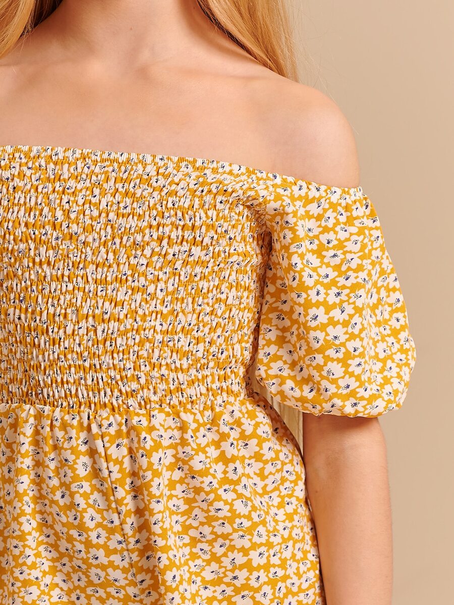 رومبير بصدر مدرز مكشوف الاكتاف بزهر اقحوان للبنات