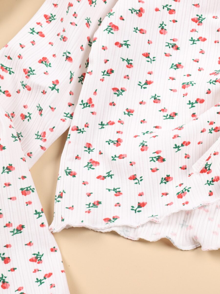 تي شيرت بقوس امامي ومكشكش بزهر اقحوان للبنات