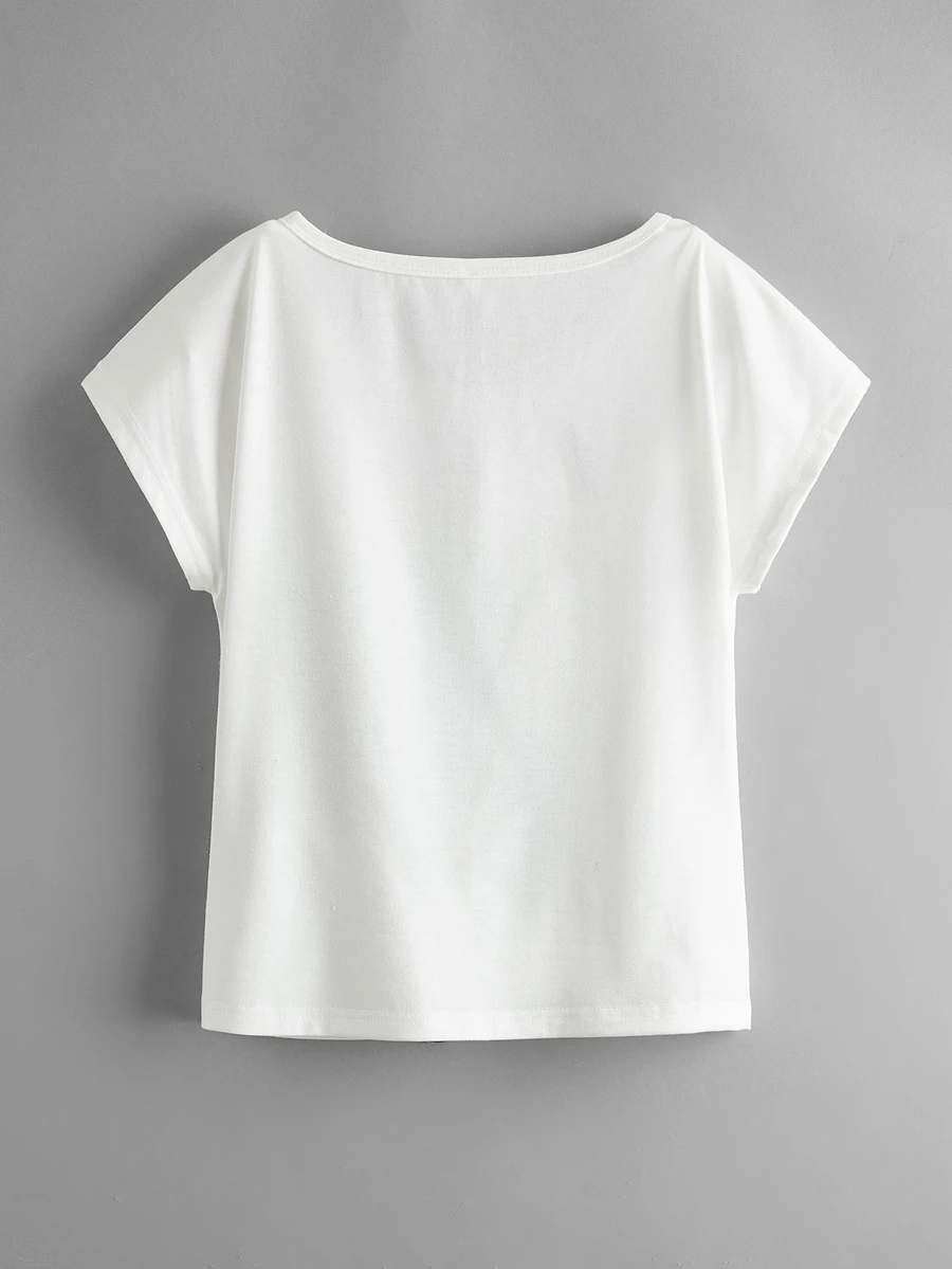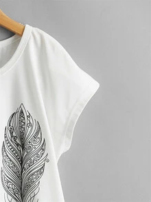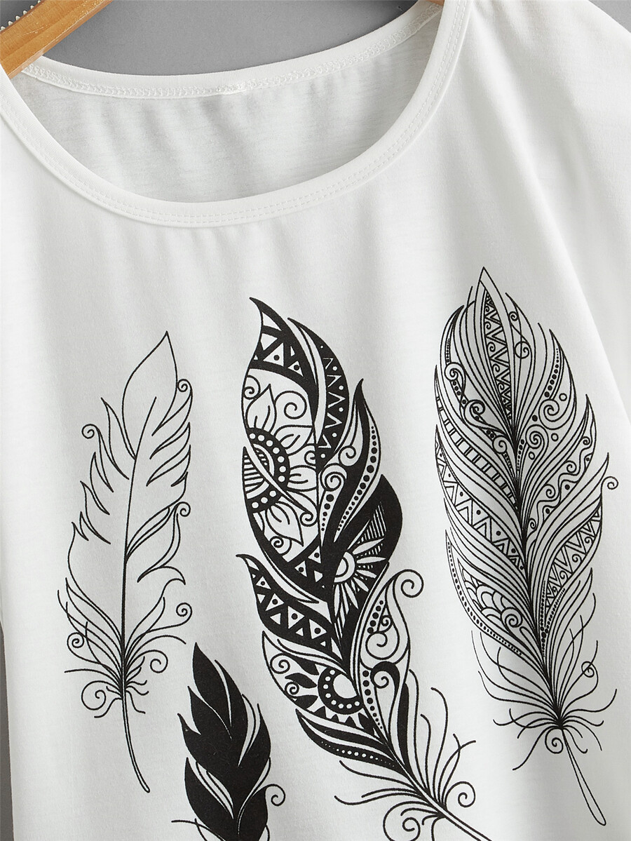 تي شيرت باكمام جناح خفاش بطباعة الريش للبنات