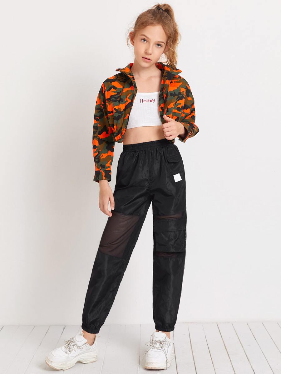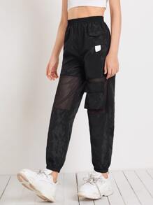 سروال كارجو بادخال شبكي وبجيب رفرف للبنات
