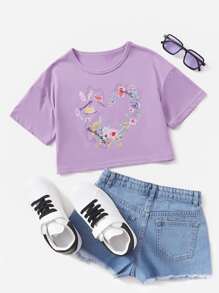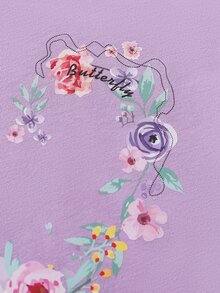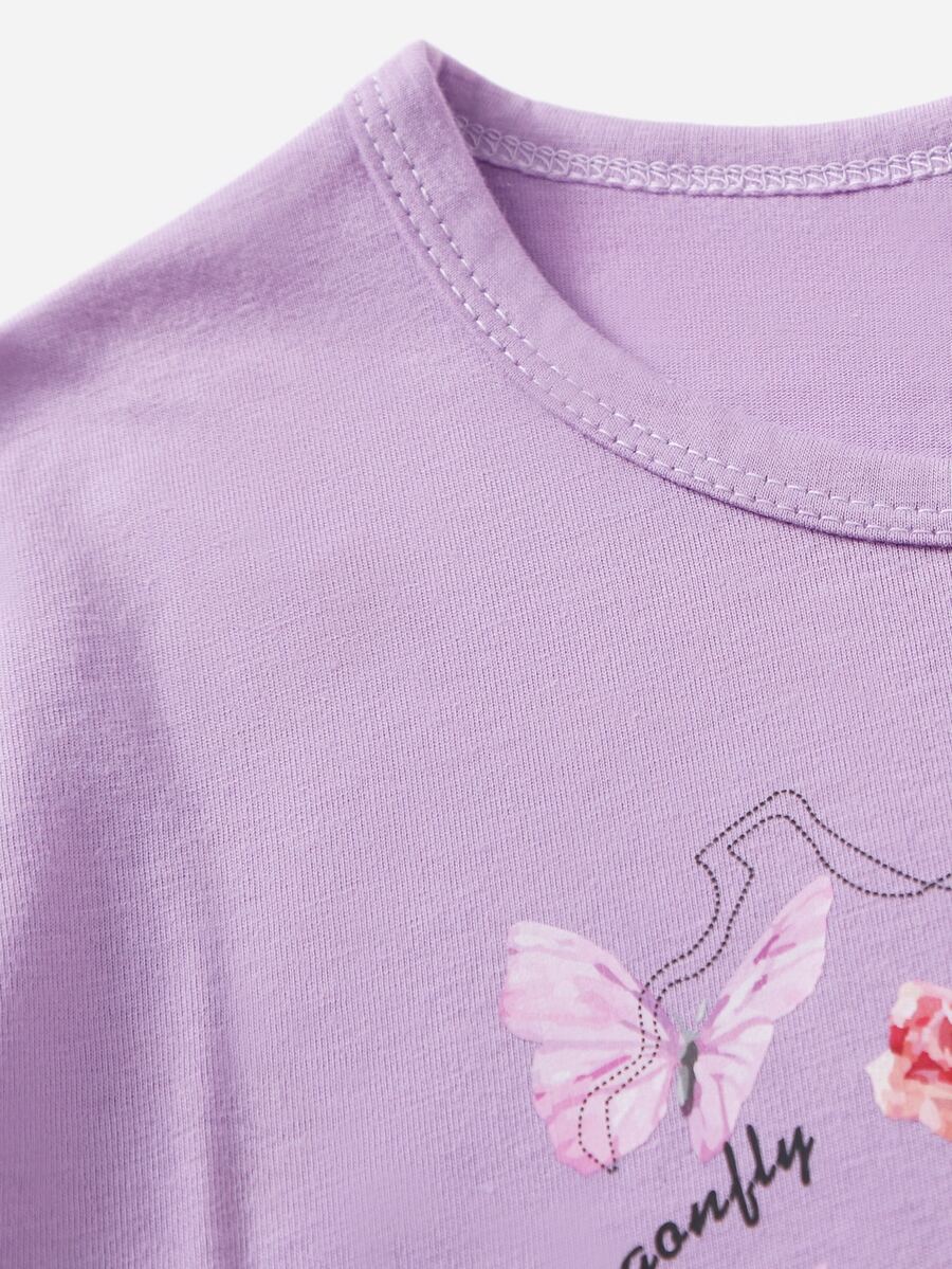 ملابس علوية للفتيات رسم الزهر رسالة كاجوال