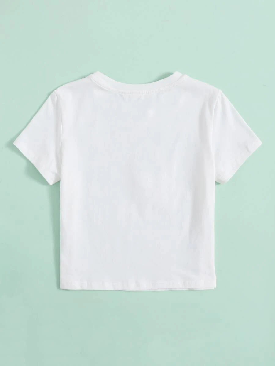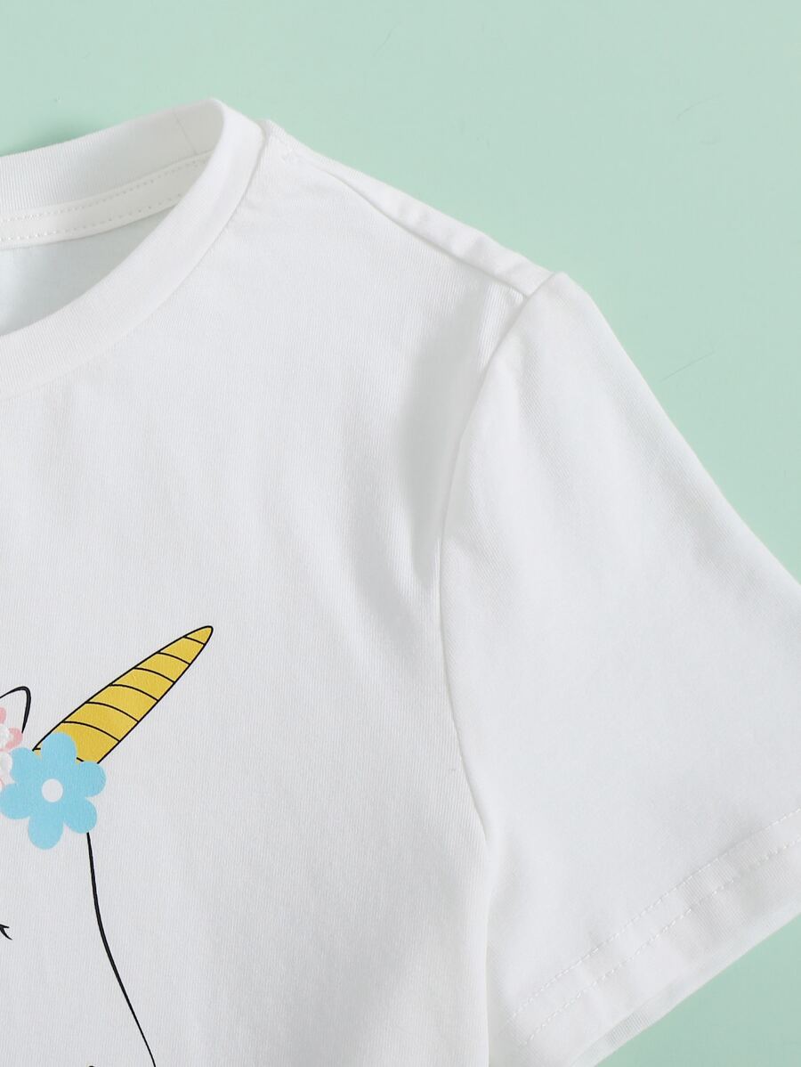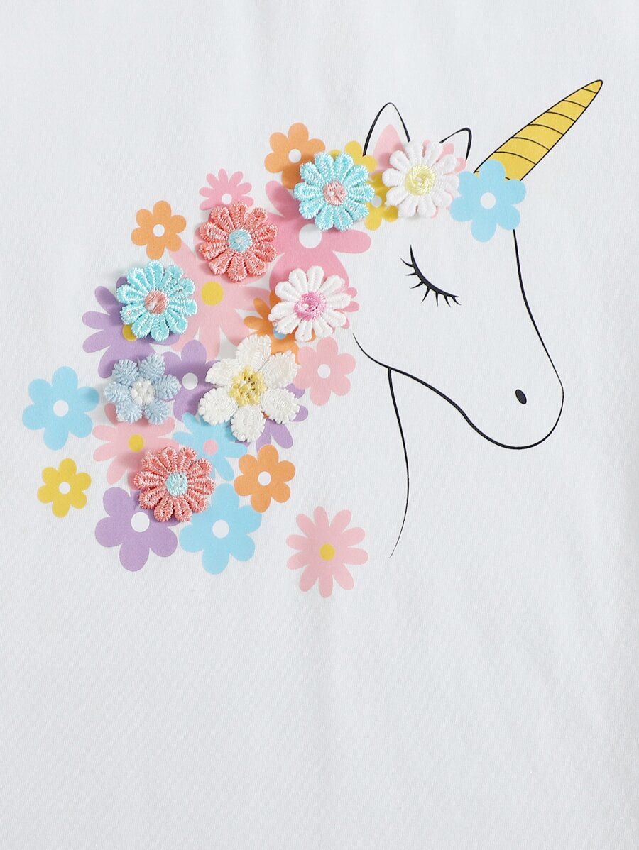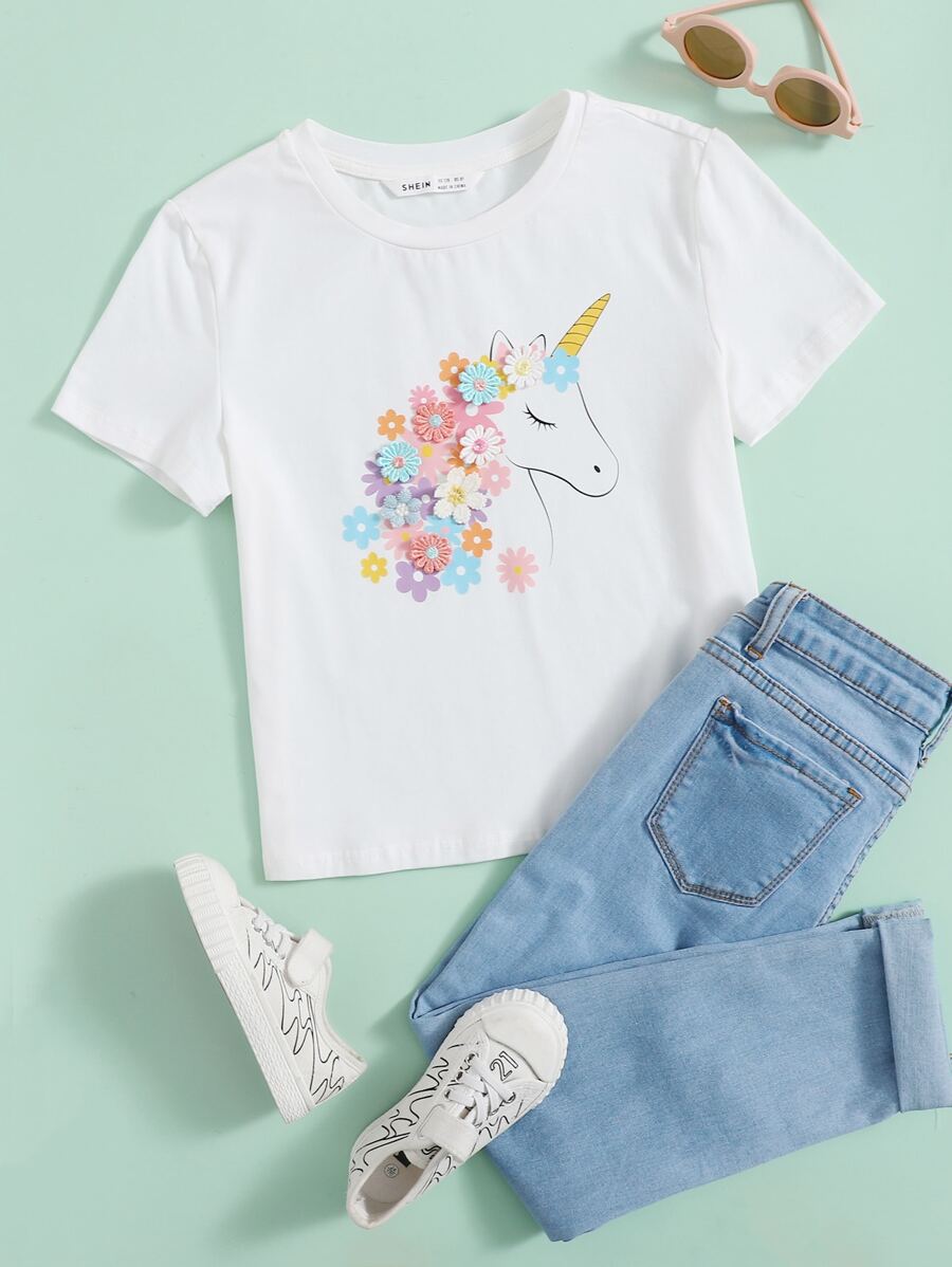 تي شيرت بطباعة وحيد القرن مزخرف بزهر للبنات