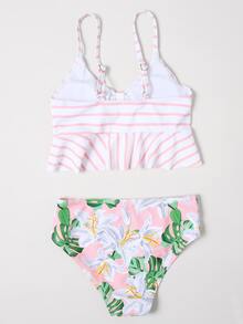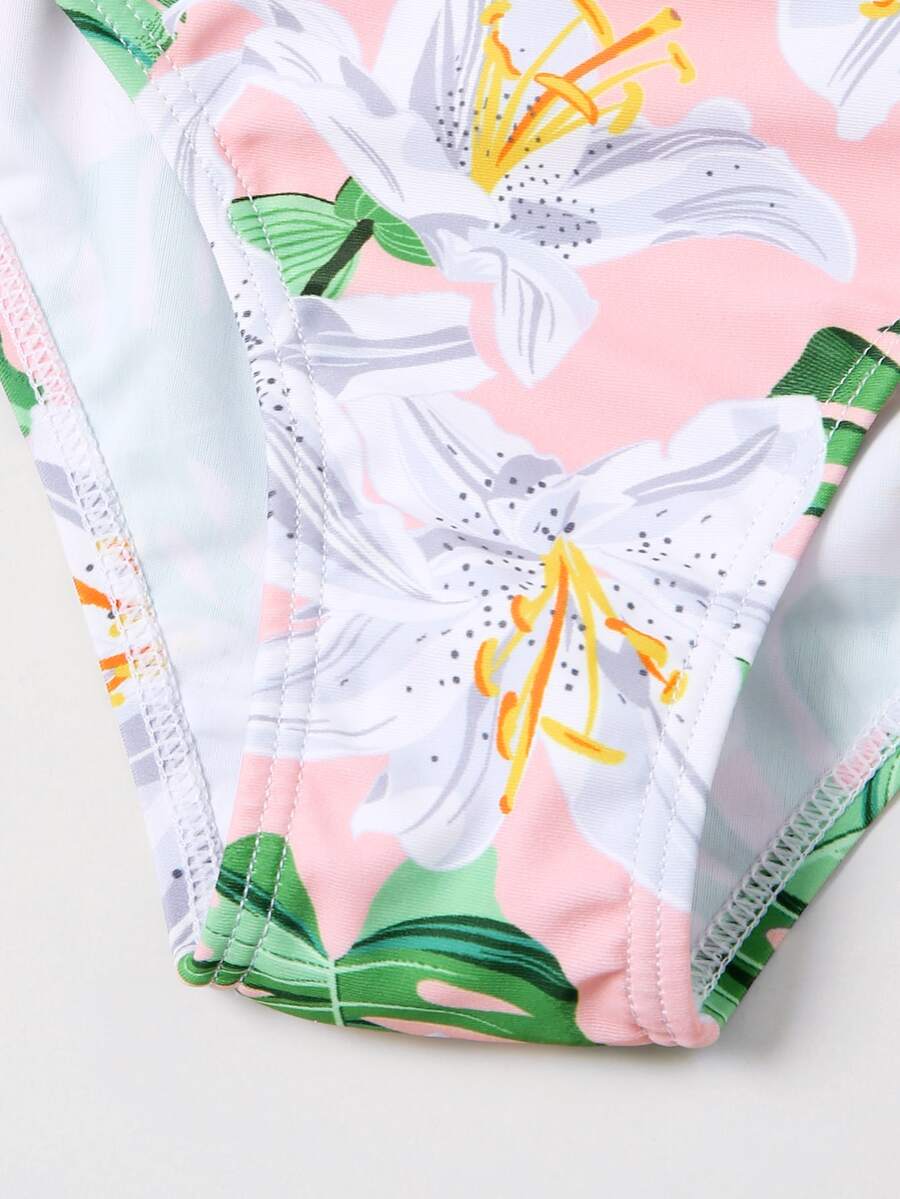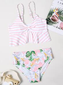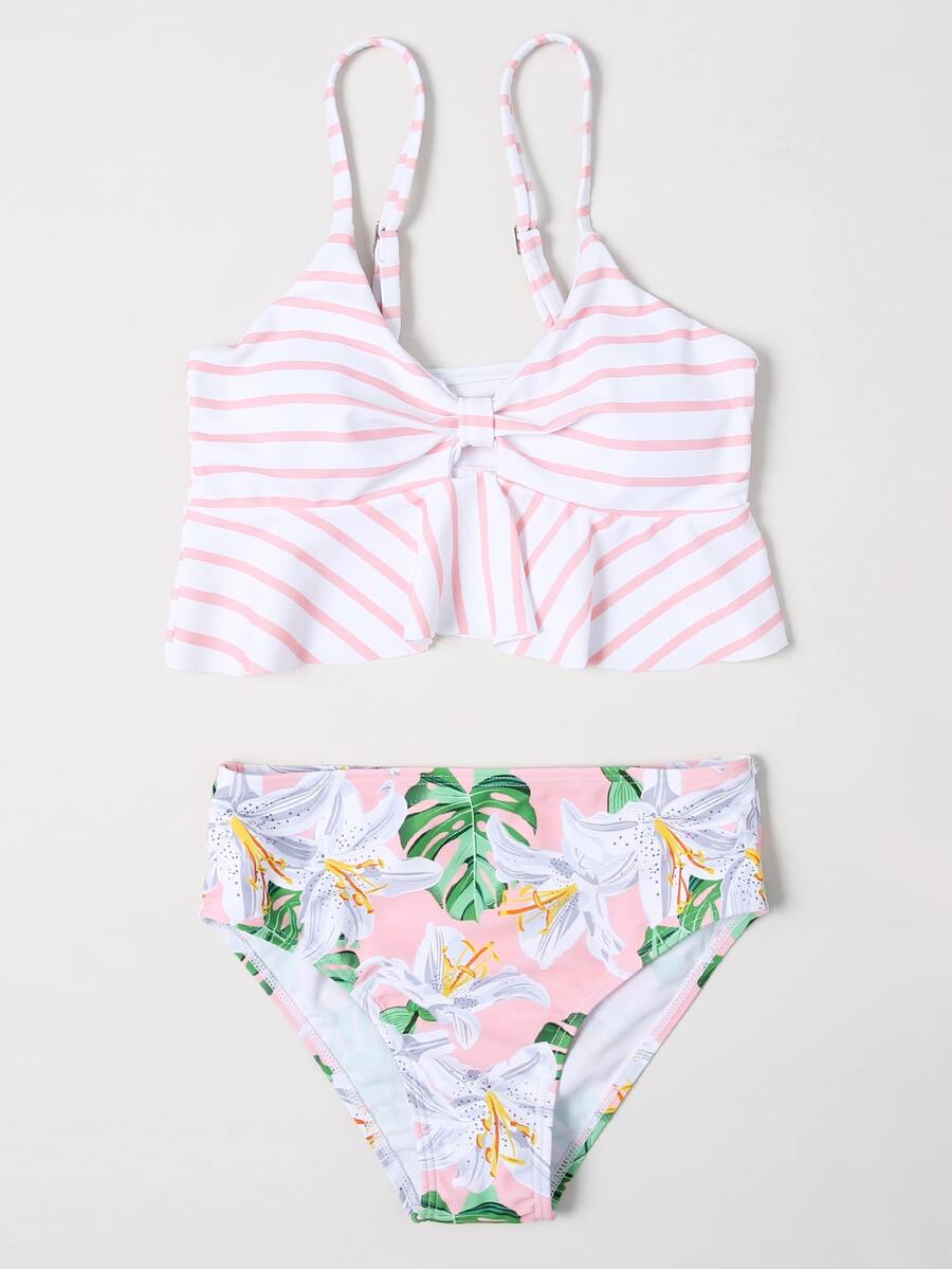 مجموعة بكيني مكونة من زهري وكشكش زهري للفتيات المراهقات، أطقم الشاطئ الصيفية