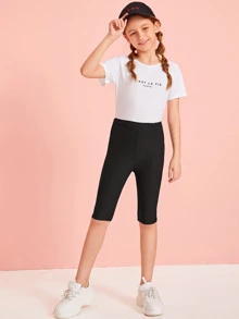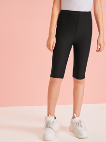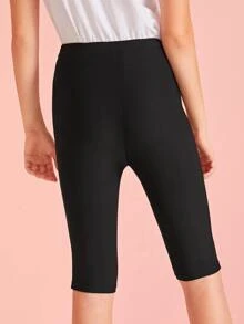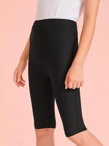 سروال قصير ضيق بلون موحد وبخصر عالي للبنات