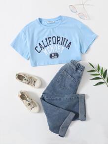 تي شيرت قصير بجرافيك عبارة للبنات