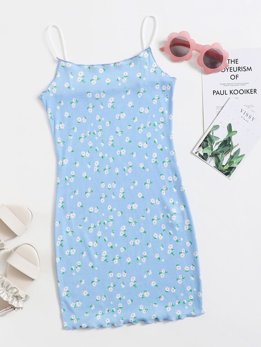 فستان مزهر ومقلم خس للبنات