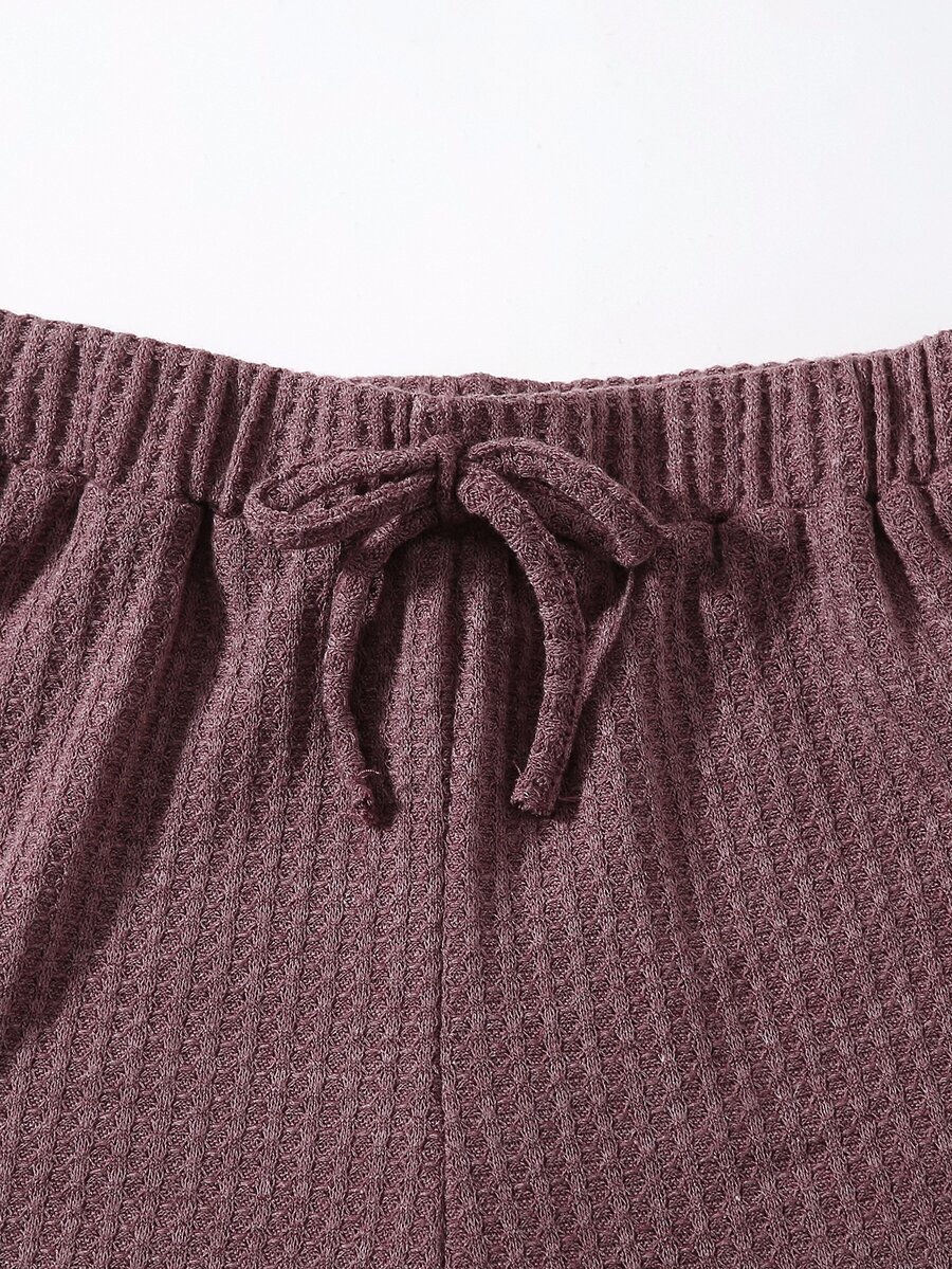 طقم شورت مع لباس علوي تانك محبوك وافل مقلم نمط الخس للبنات