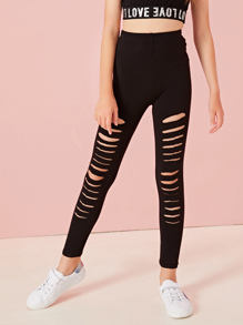 ليجينز بلون موحد مع تفاصيل ممزق للبنات