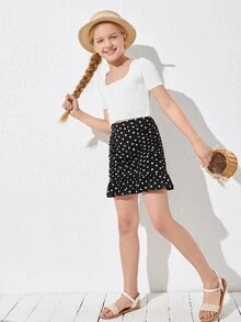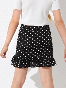 تنورة بنقاط البولكا بحافة مكشكش مزين للبنات