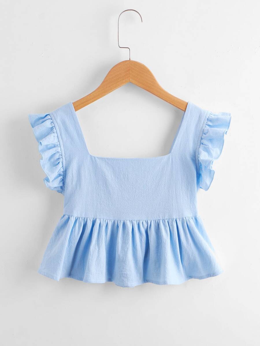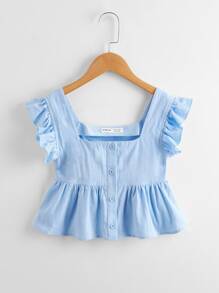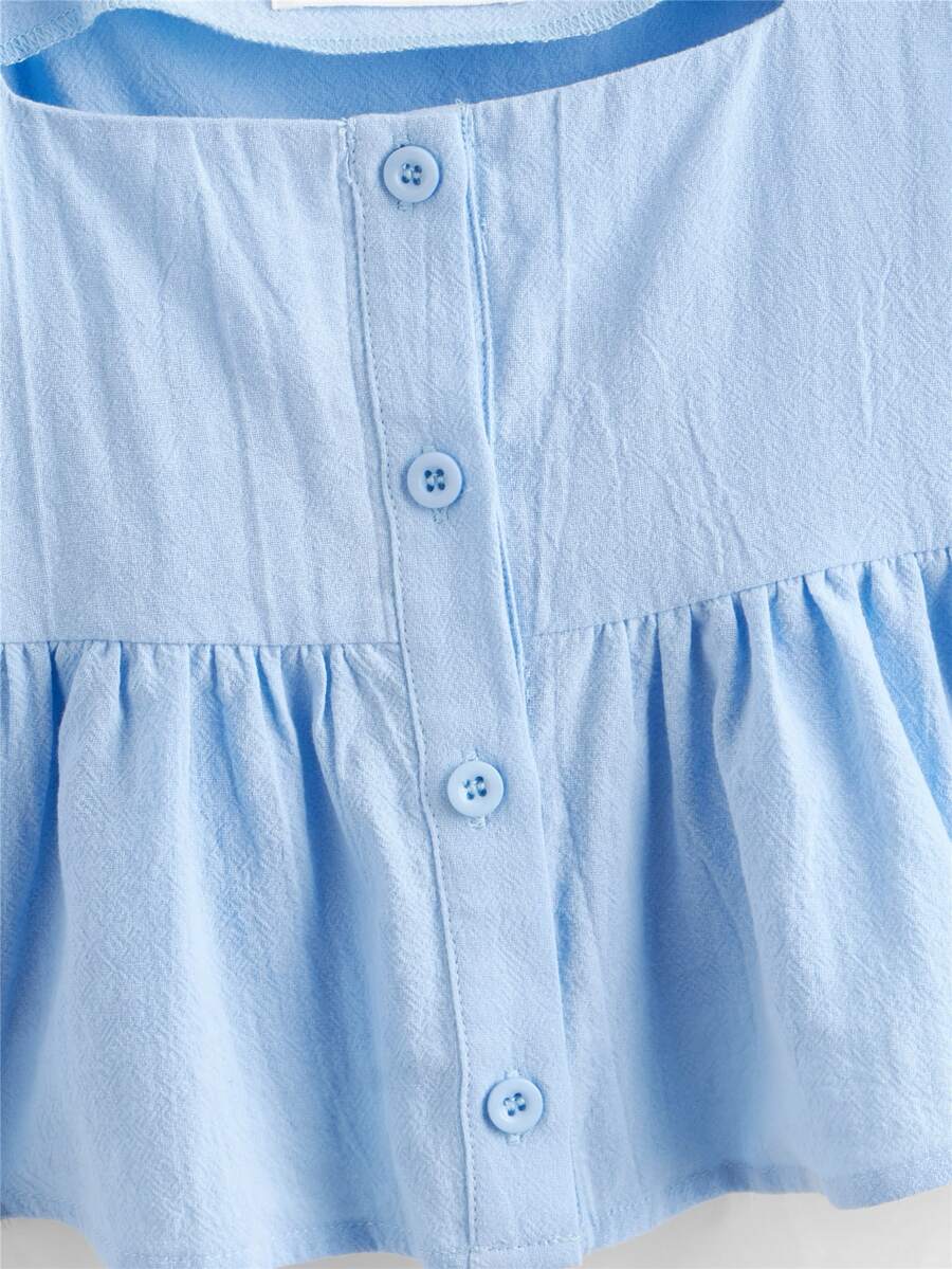 بلوزة مطوي الثنايا بأزرار وبأبط مكشكش للبنات