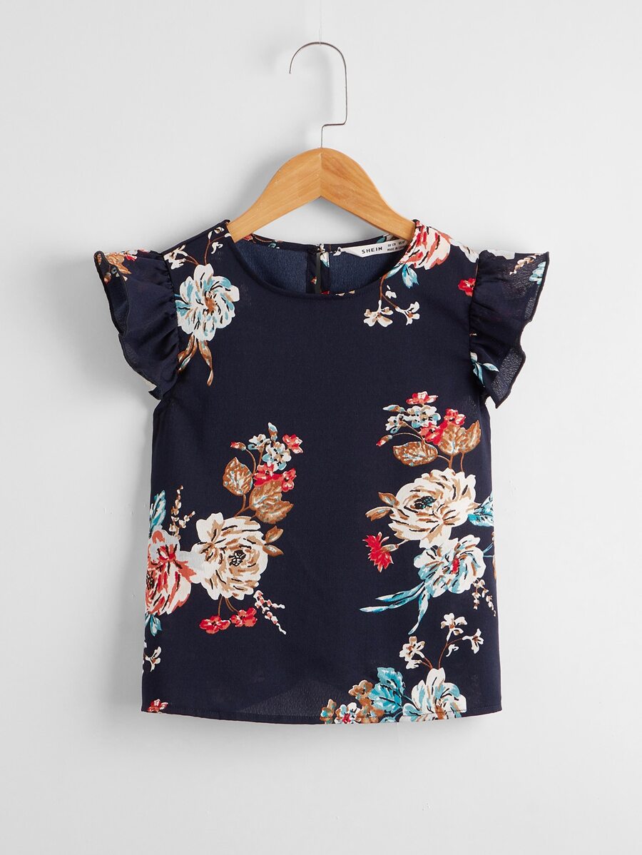 لباس علوي بطباعة زهر بأبط مكشكش للبنات
