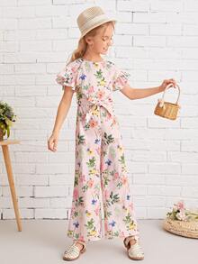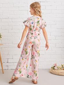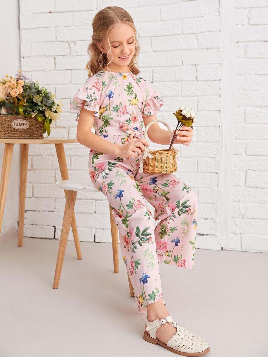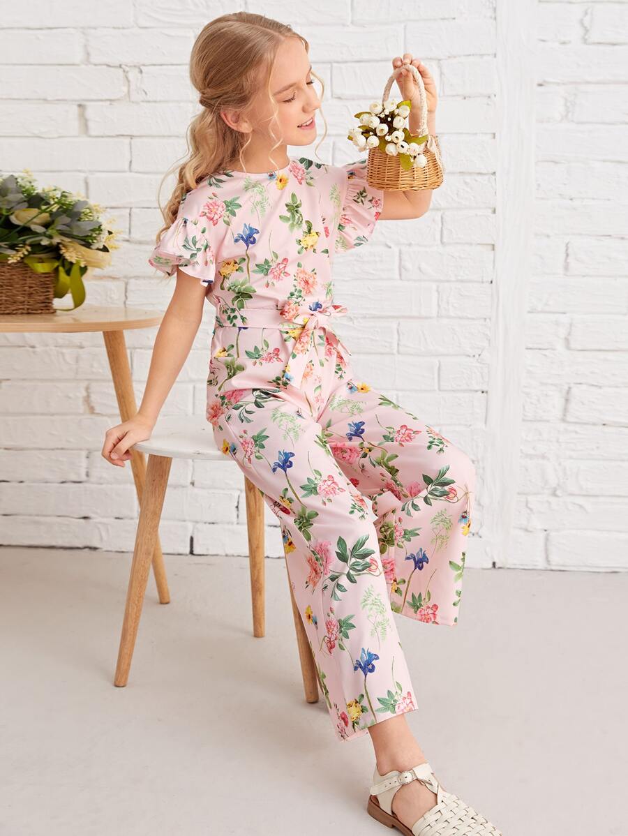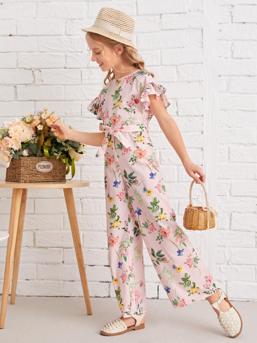 جمبسوت بطباعة نبات بساق واسع وبكفة مكشكش للبنات