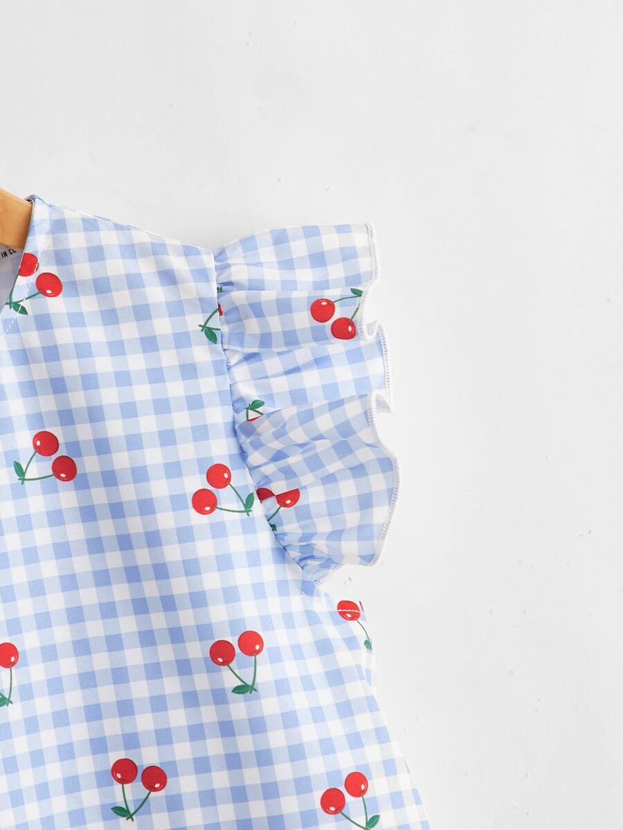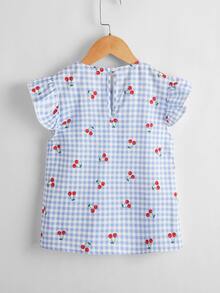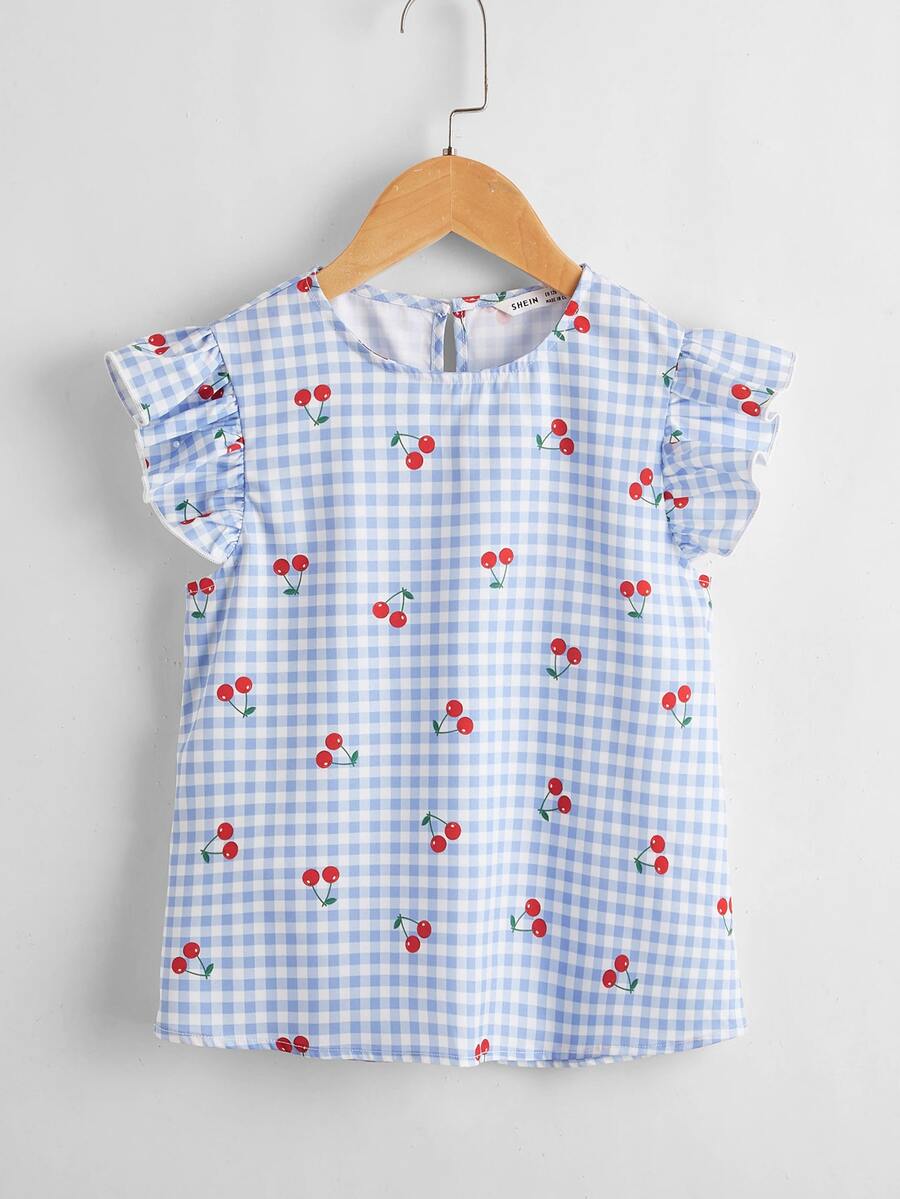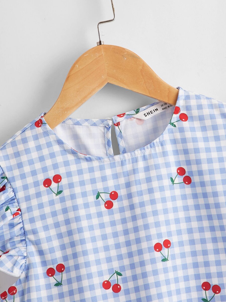 لباس علوي بطباعة كرز ومقلم مكشكش للبنات