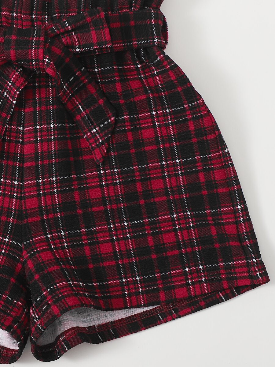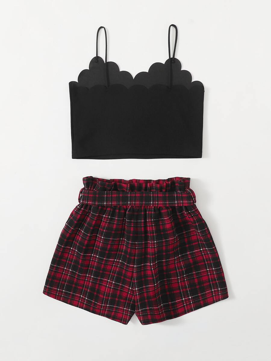 بنات بحافة صدفي صدرية كامي قصير و خصر عالي بالتجاعيد حزام ترتان طقم شورت