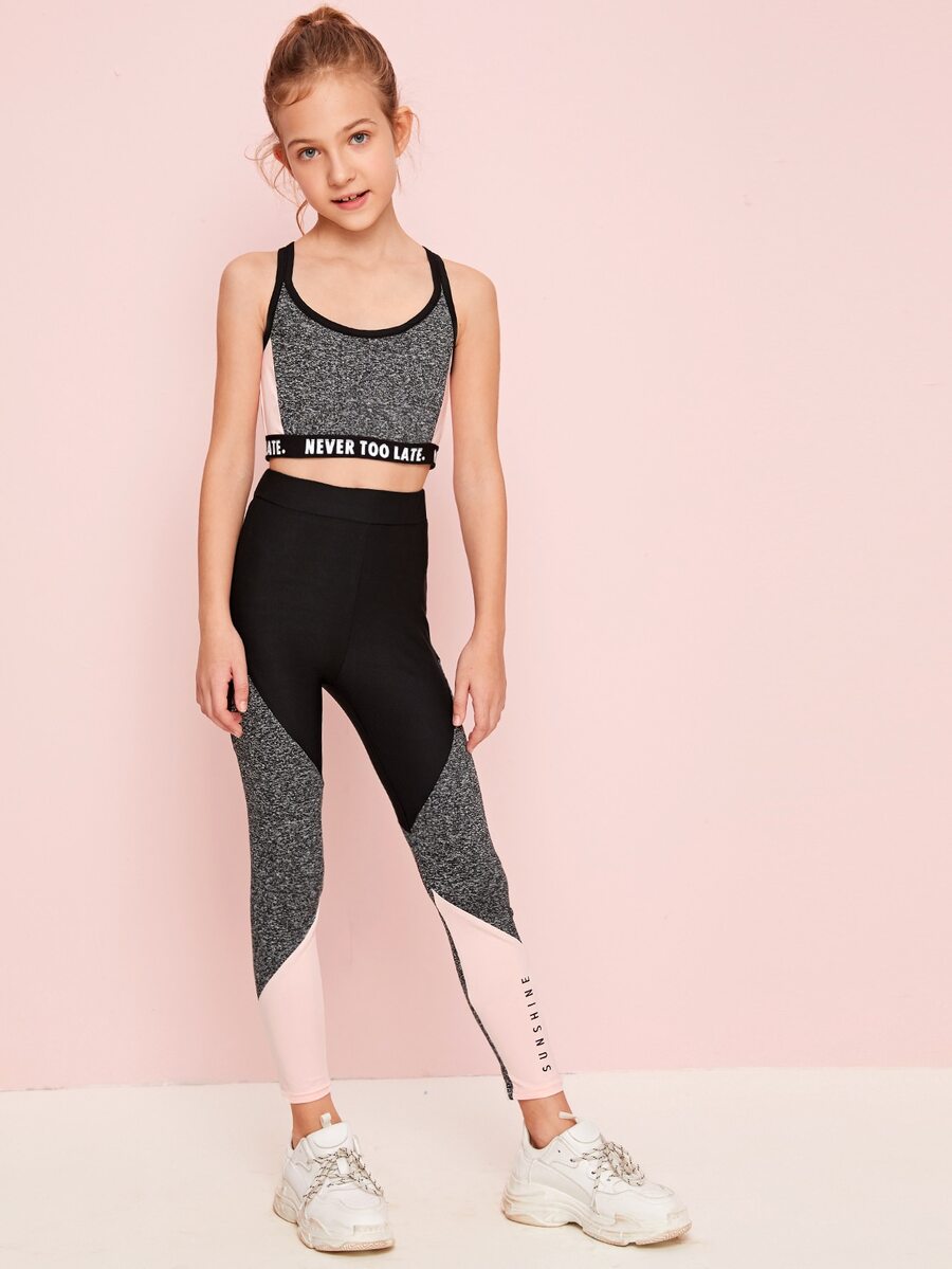 طقم ليقينز مع لباس علوي بلوحة نمط عروس البحر وبشريط شعار للبنات