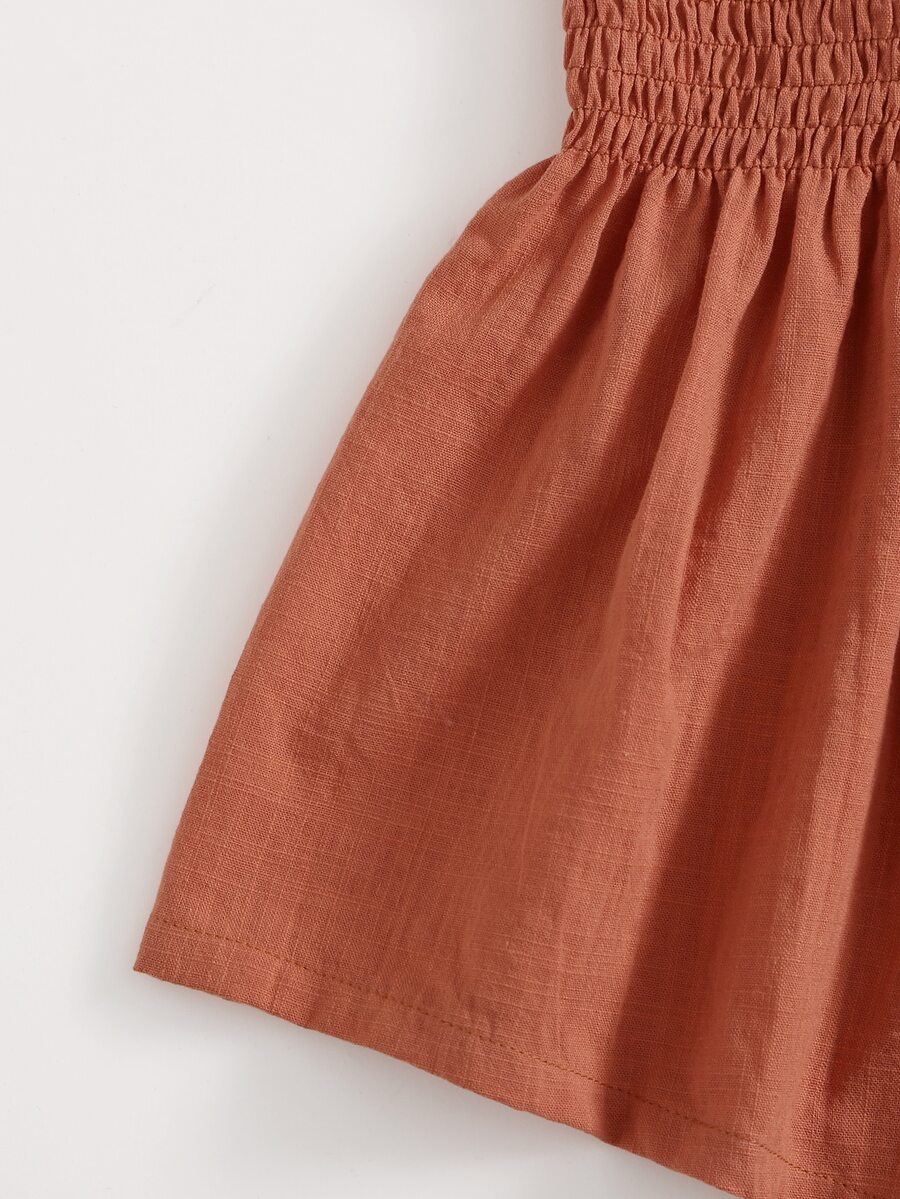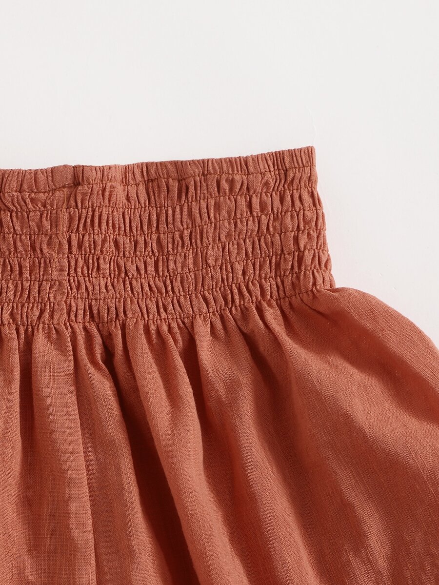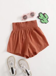 سروال قصير بخصر مدرز بلون موحد للبنات