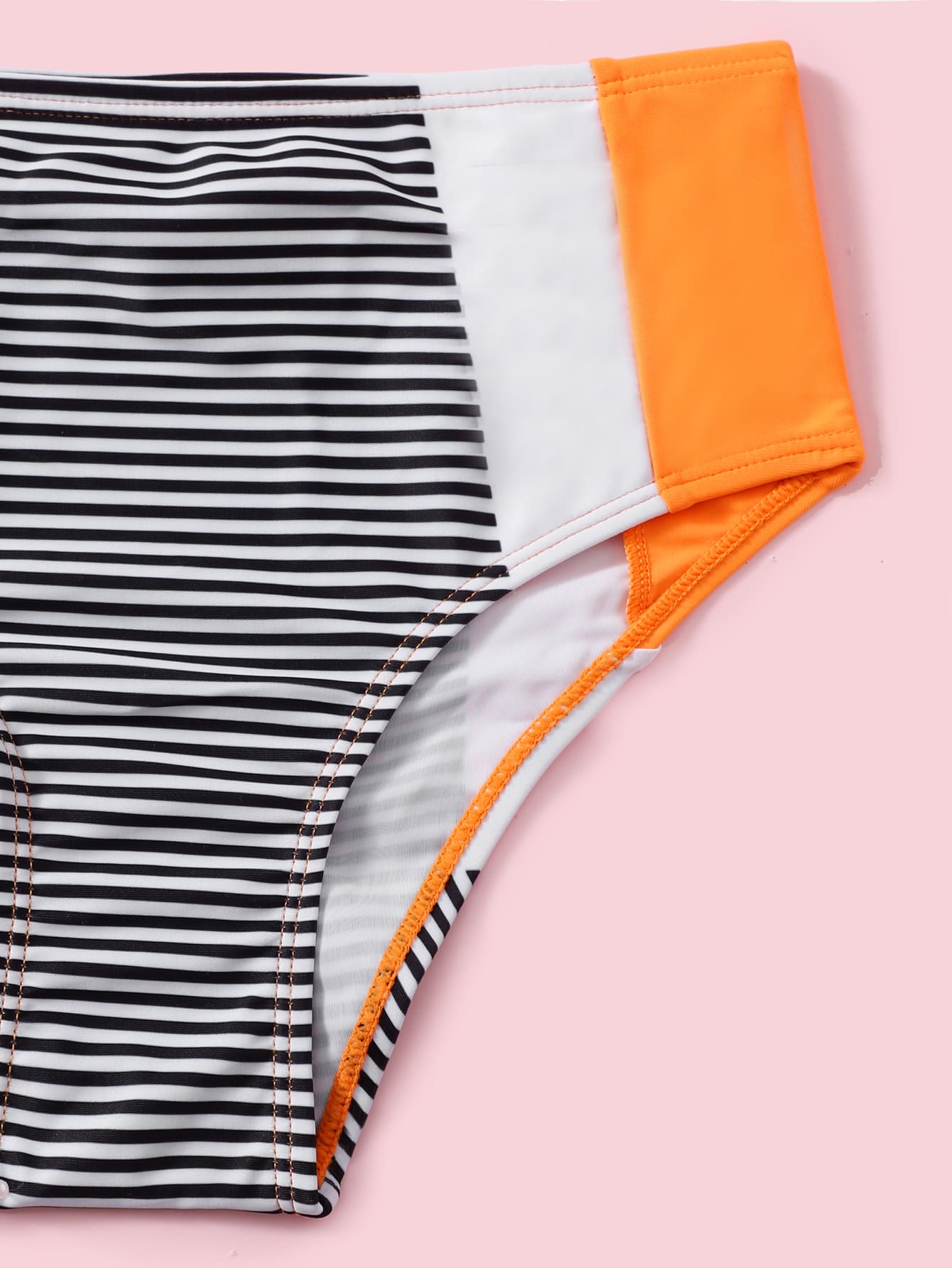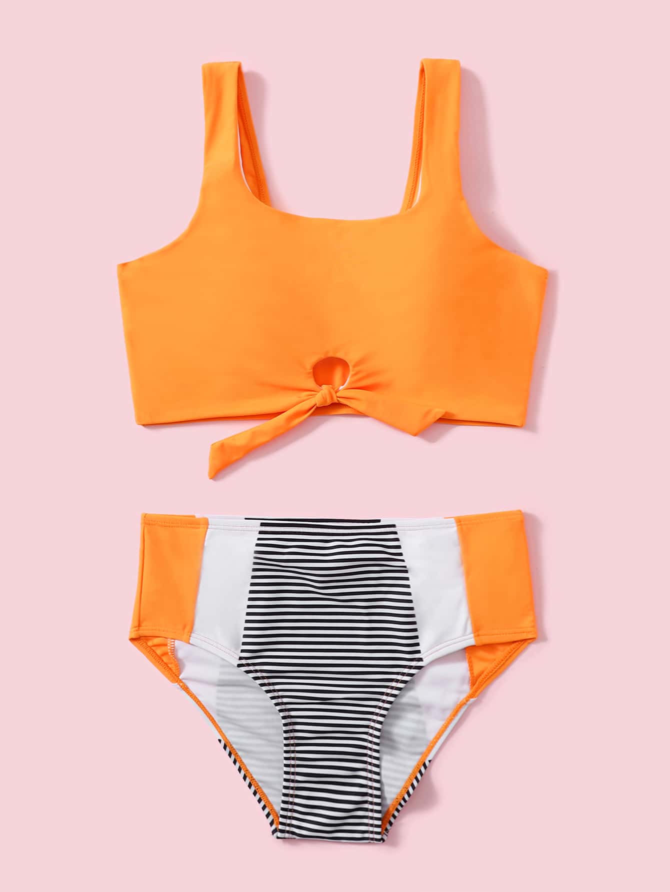 بكيني مشدود مخطط للفتاة المراهقة, شاطئ صيفي