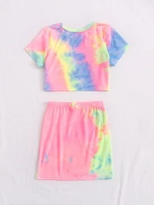 طقم تنورة مع تي شيرت بصبغ متعادلة