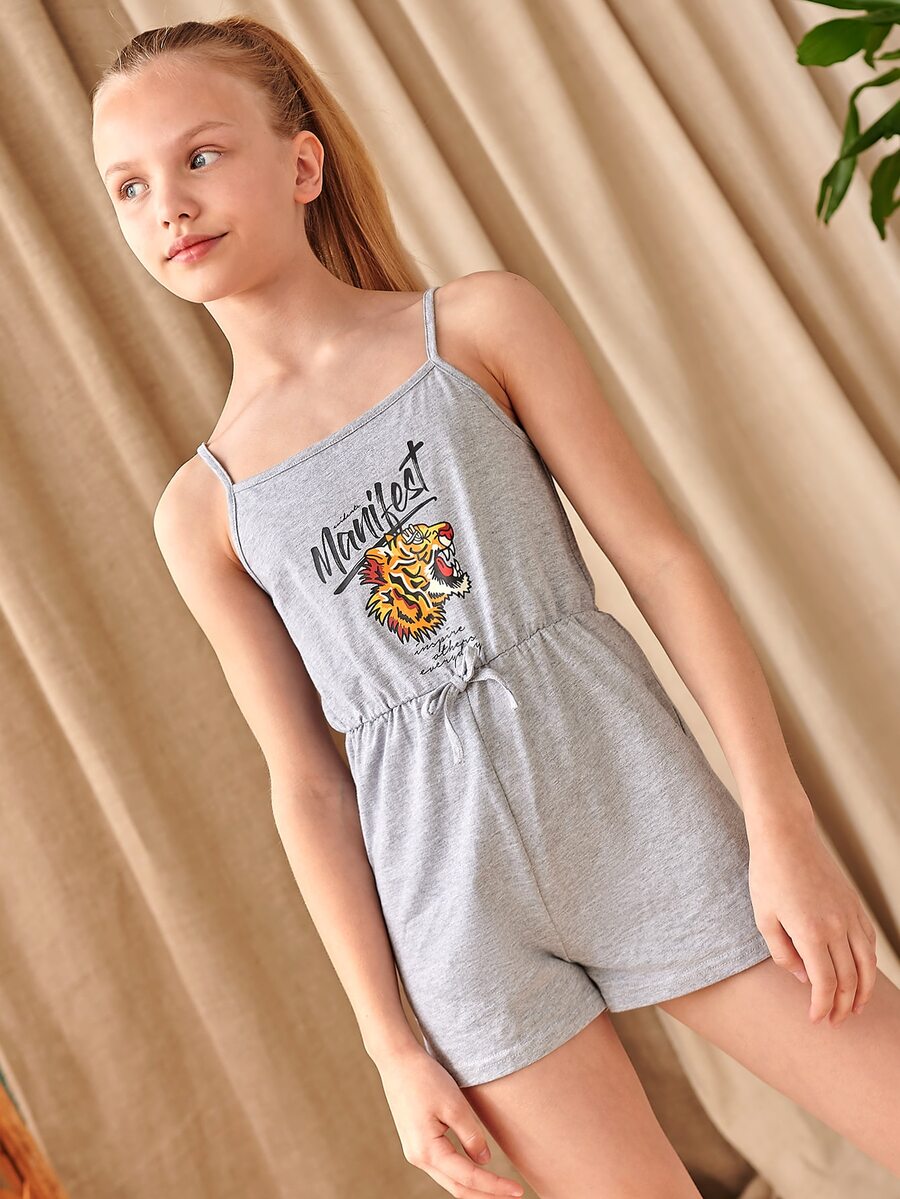 رومبير كامي بجرافيك عبارة ونمر للبنات
