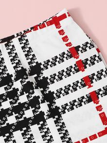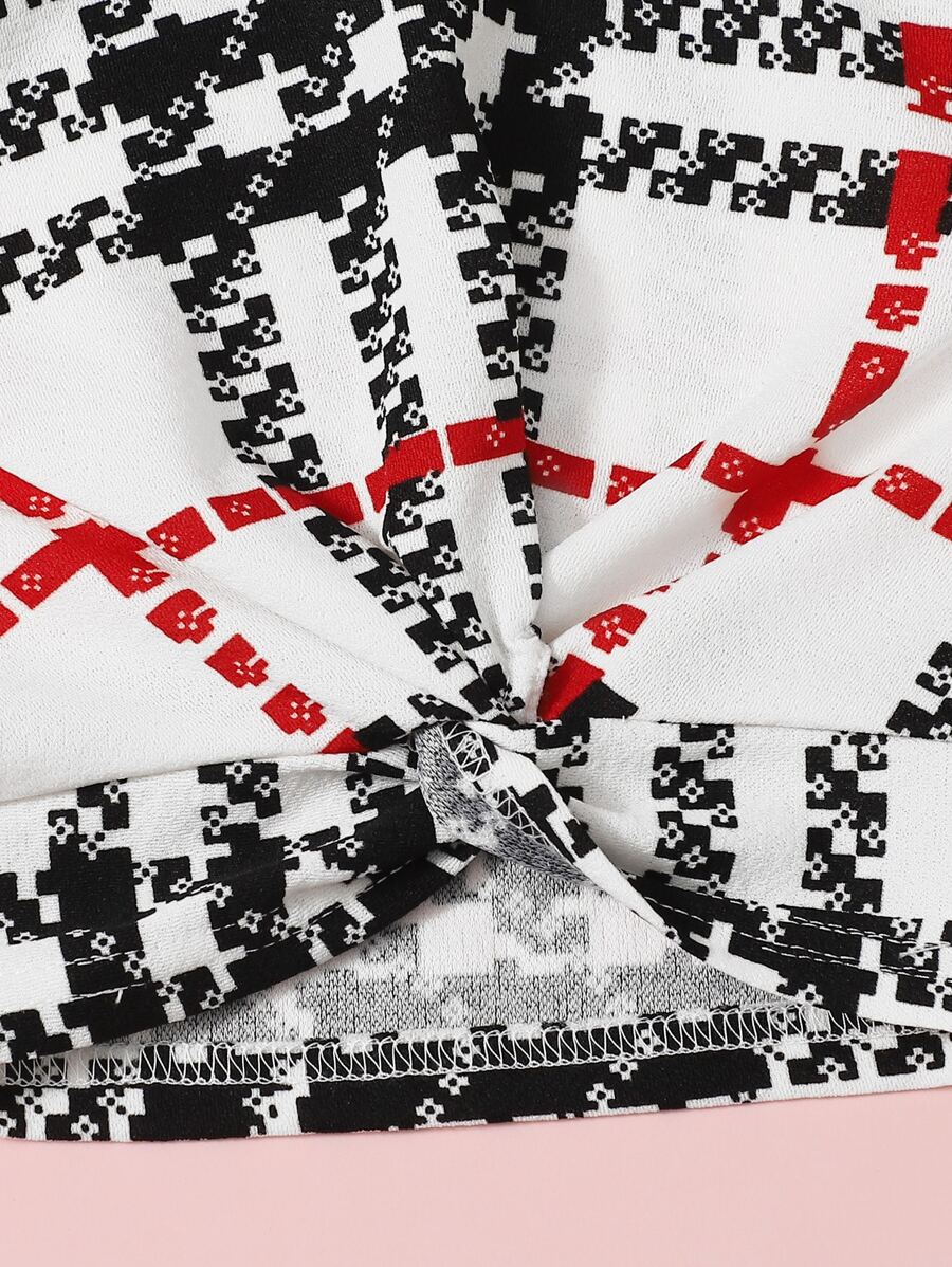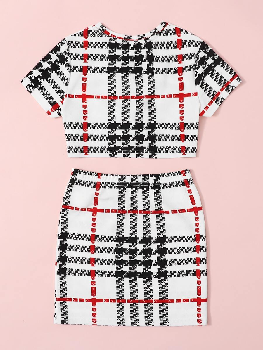 طقم تنورة مع لباس علوي مربعات مطوي من الامام للبنات