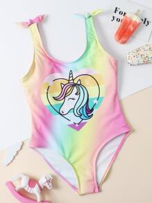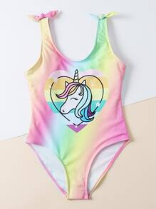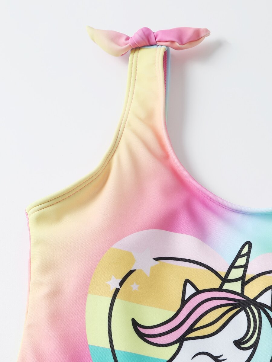 ملابس سباحة قطعة واحدة بطباعة وحيد القرن للبنات