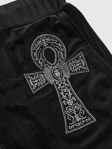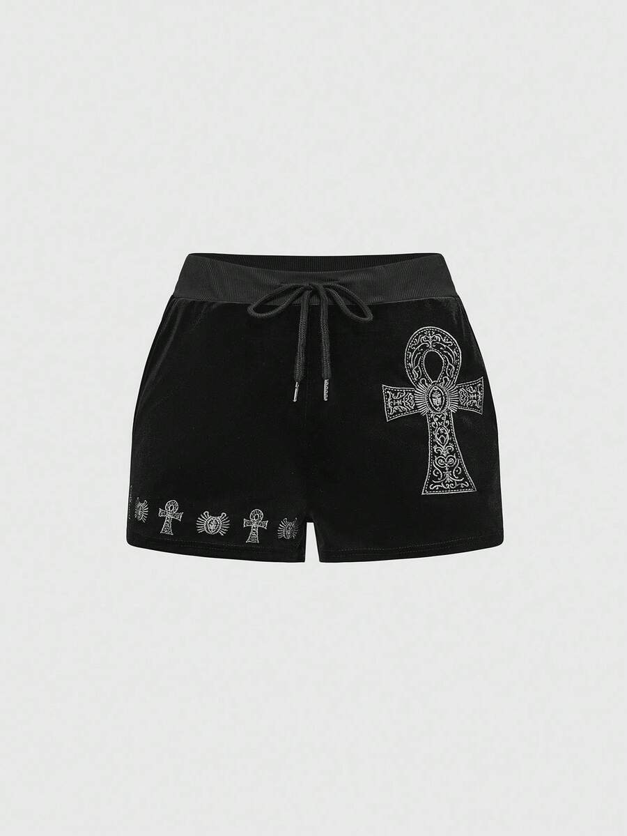 Goth شورت مخمل مطرز بالراين ستون والياقوت والكريستال بتصميم قطرة الدمع والشمس والسيف والقلب والعين والنجمة، مناسب لحفلات الصيف والتخرج والحفلات الراقصة والعطلات الشاطئية
