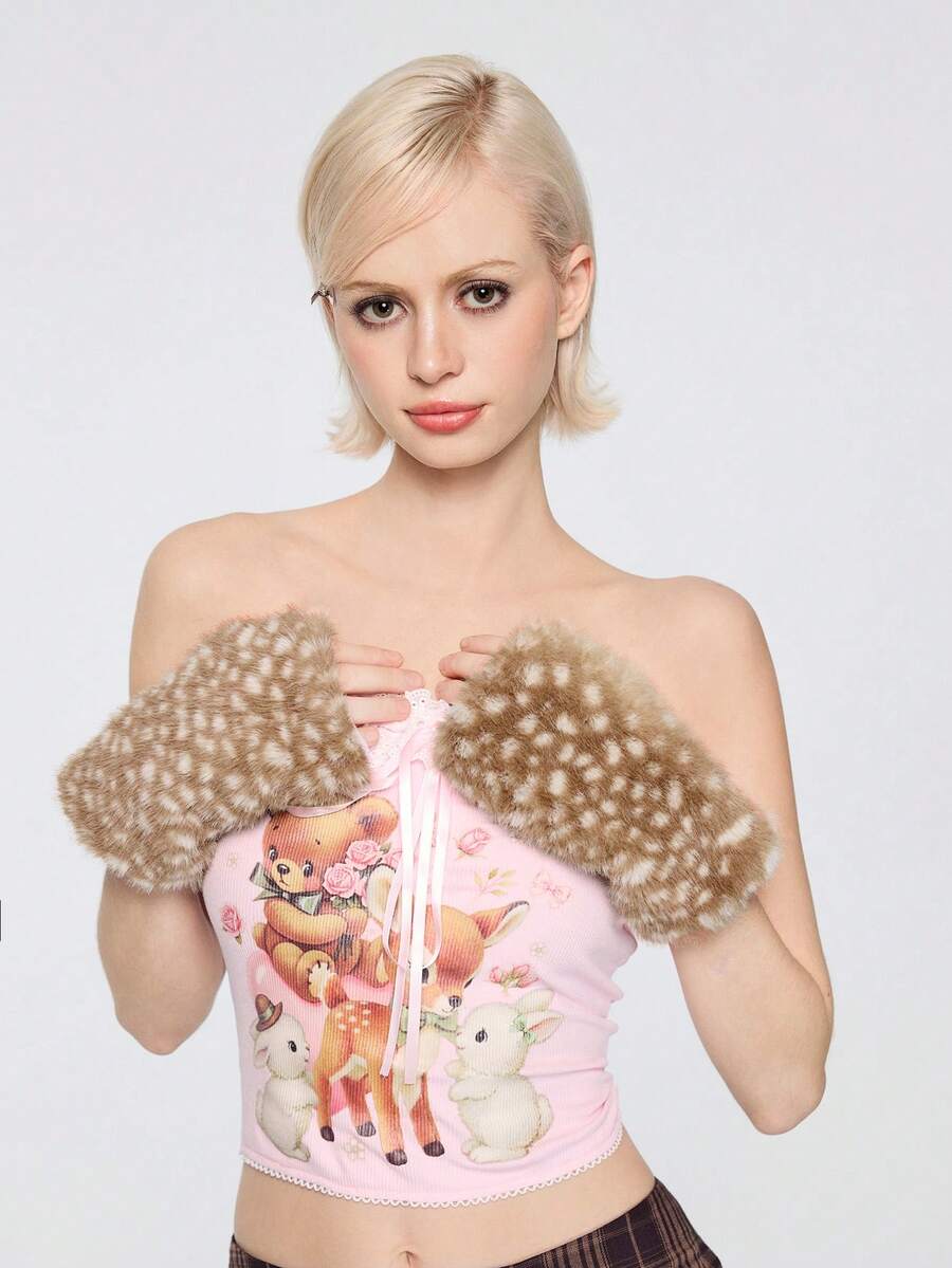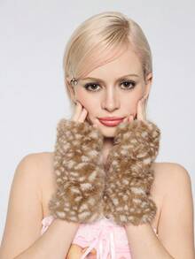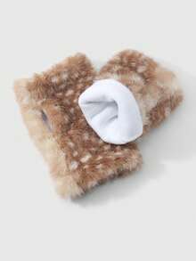 Goth زوج واحد من القفازات الكاجوال العصرية الأنيقة الجميلة الكسولة ذات الجودة العالية للخريف/الشتاء، قفازات دافئة من الفرو الصناعي بنقشة نقاط الغزال ذات تدرج اللون، قفازات بدون أصابع، مناسبة للملابس اليومية للنساء، هدية عيد