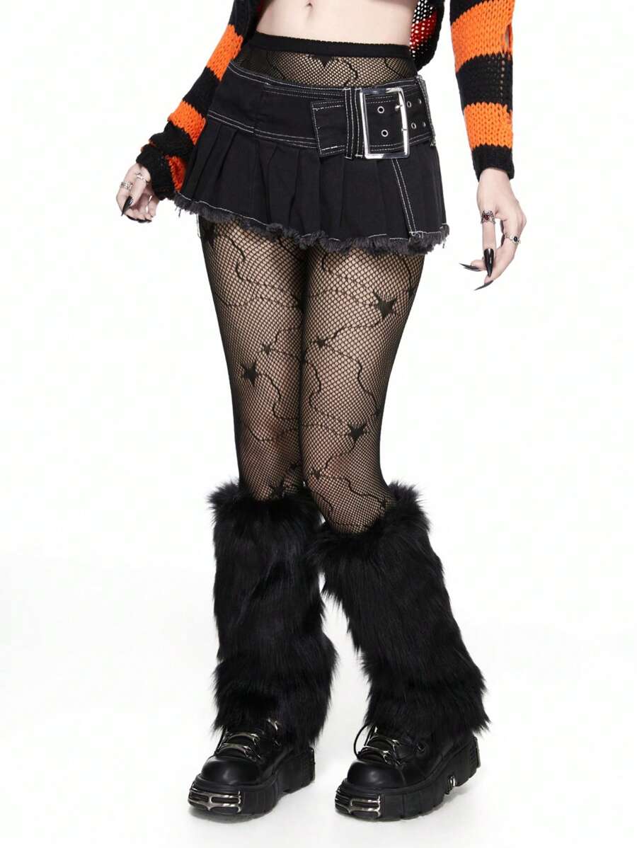 Goth طقم موضة فاتنة بمظهر مُظلم، زوج واحد من جوارب السيقان المبطنة بلون مُوَحَّد + زوج واحد من جوارب الشباك المطاطية بطراز جوتيك
