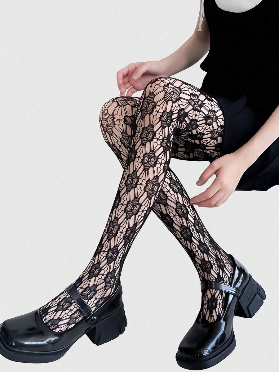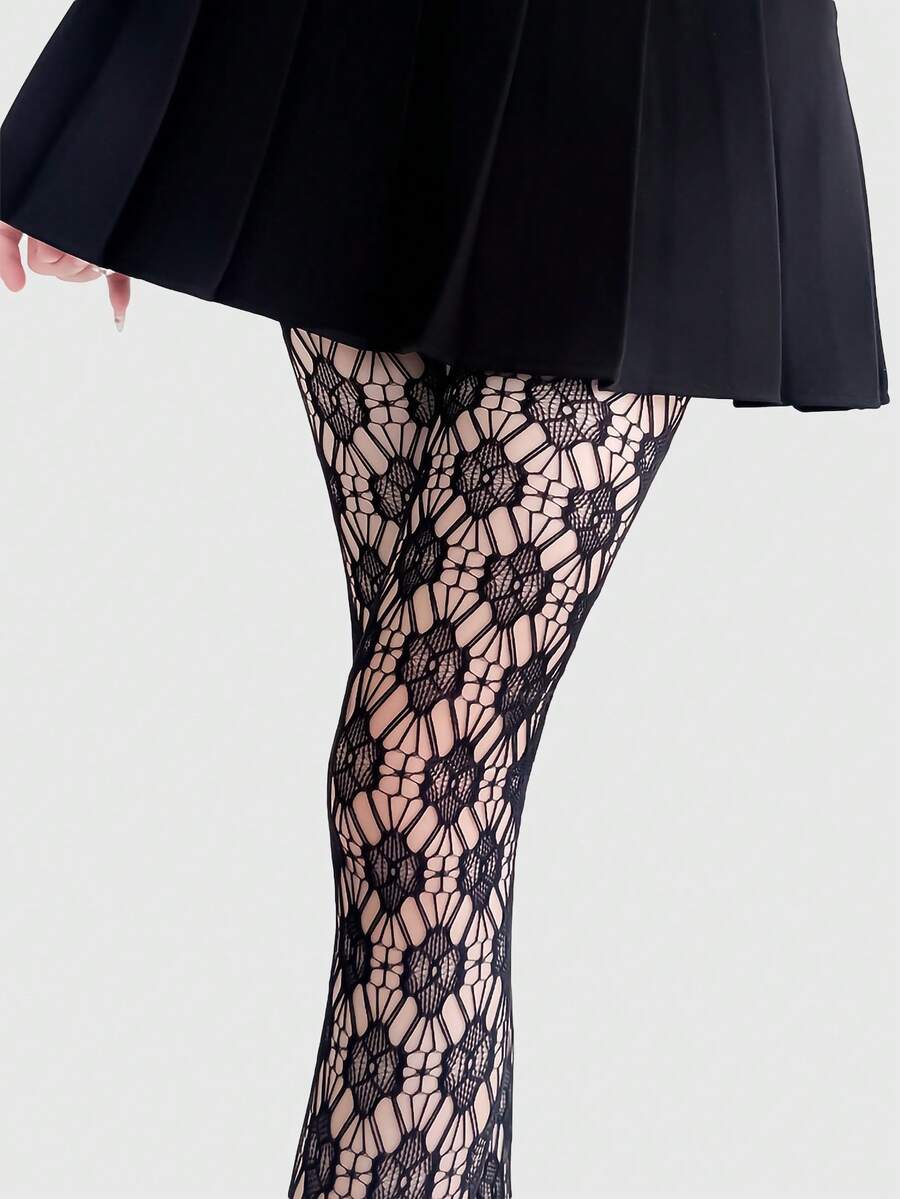 Goth زوج جوارب طويلة أنثوية ذات نمط شبكي من الدانتيل والوبر المزخرف