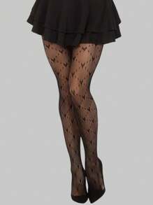 Goth زوج واحد من جوارب شبكة صيد السمك بنمط قلب ومعين أسود للسيدات لجميع المواسم لعيد الحب