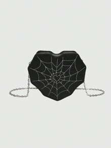 Goth حقيبة صغيرة للكتف ذات شكل قلب وطبعة شبكة العنكبوت عصرية باللون الأسود قطعة واحدة