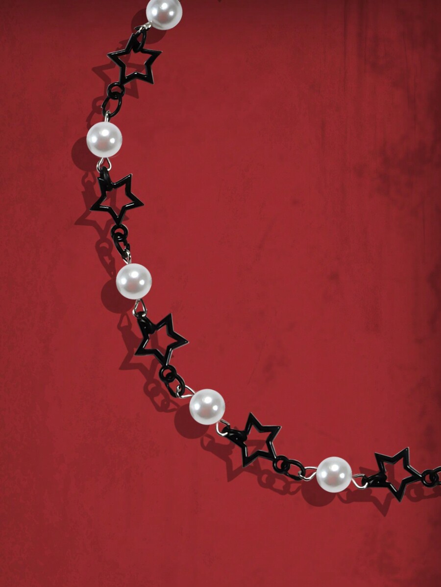 Goth عقد بزخرفة من اللؤلؤ الاصطناعي ونجمة خماسية بطراز Y2k للنساء