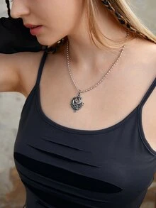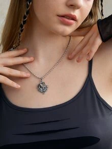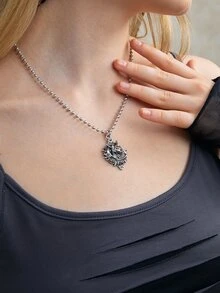 Goth قلادة رأس حيوان و مزخرف بقمر بتعليقة هندسي
